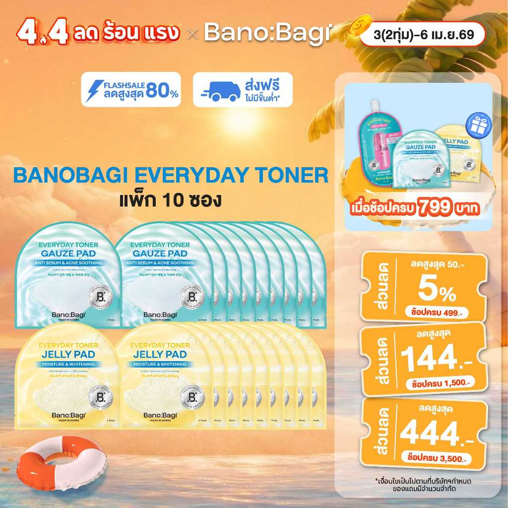 (ยกแพ็ก 10 ซอง)BANOBAGI Everyday Toner Pad บาโนบากิ เอวรี่เดย์ โทนเนอร์ แพด (1 ซอง/4 แพด)