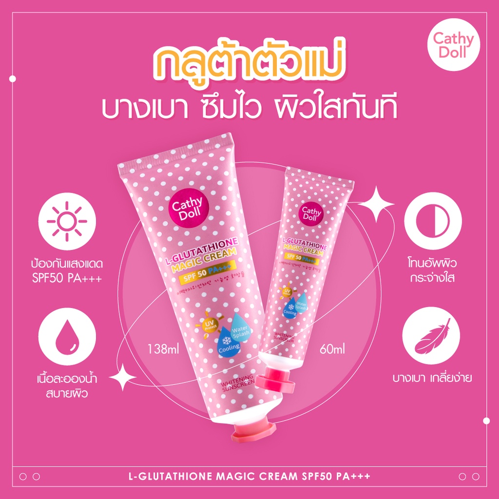 Cathy Doll L-glutathione Magic Cream SPF50 PA+++ 60ml (ครีมทาผิว,โลชั่น,โลชั่นกันแดด)