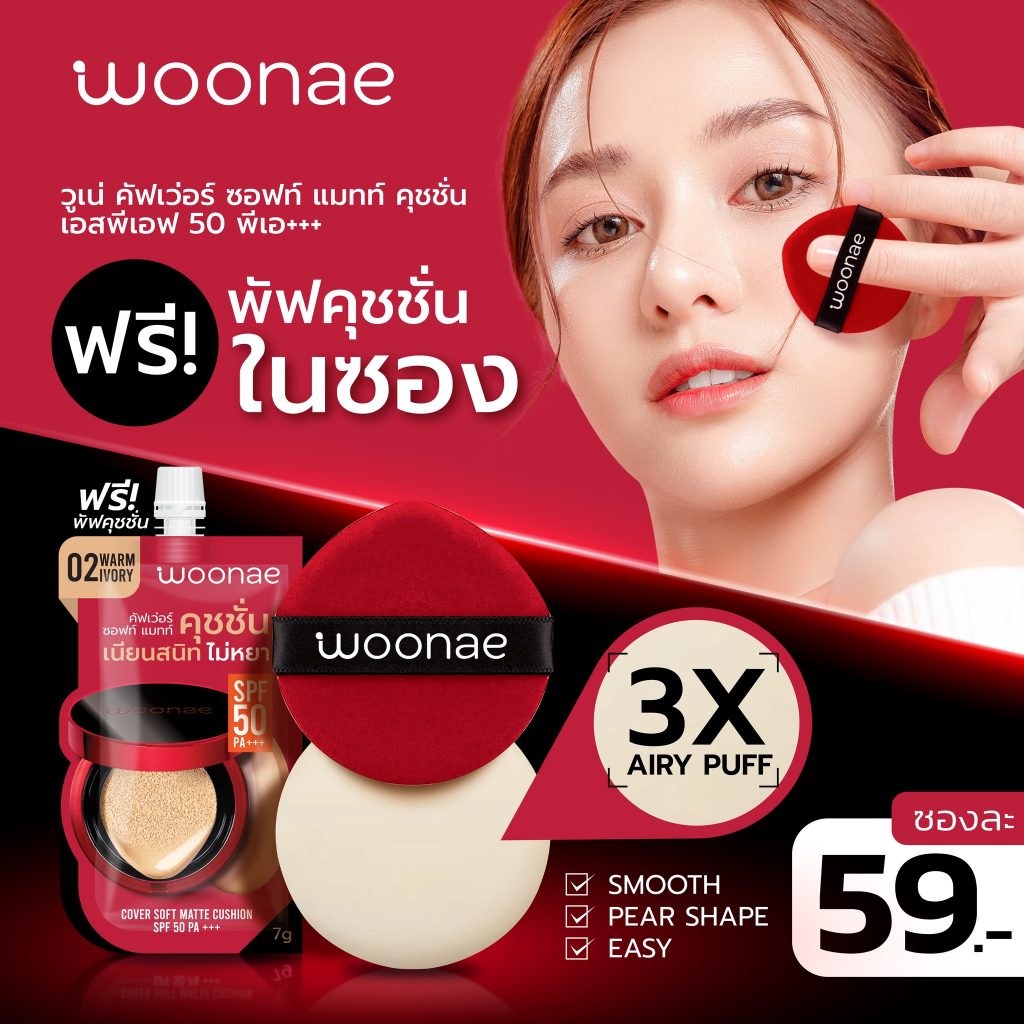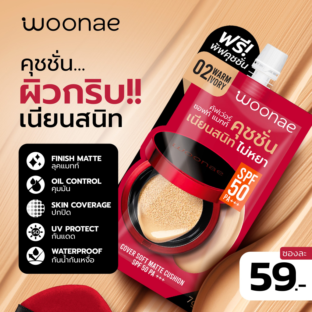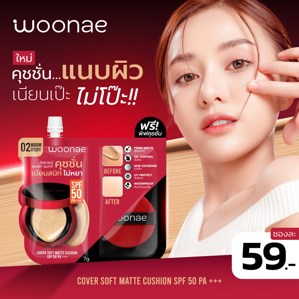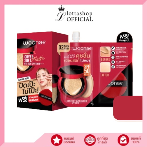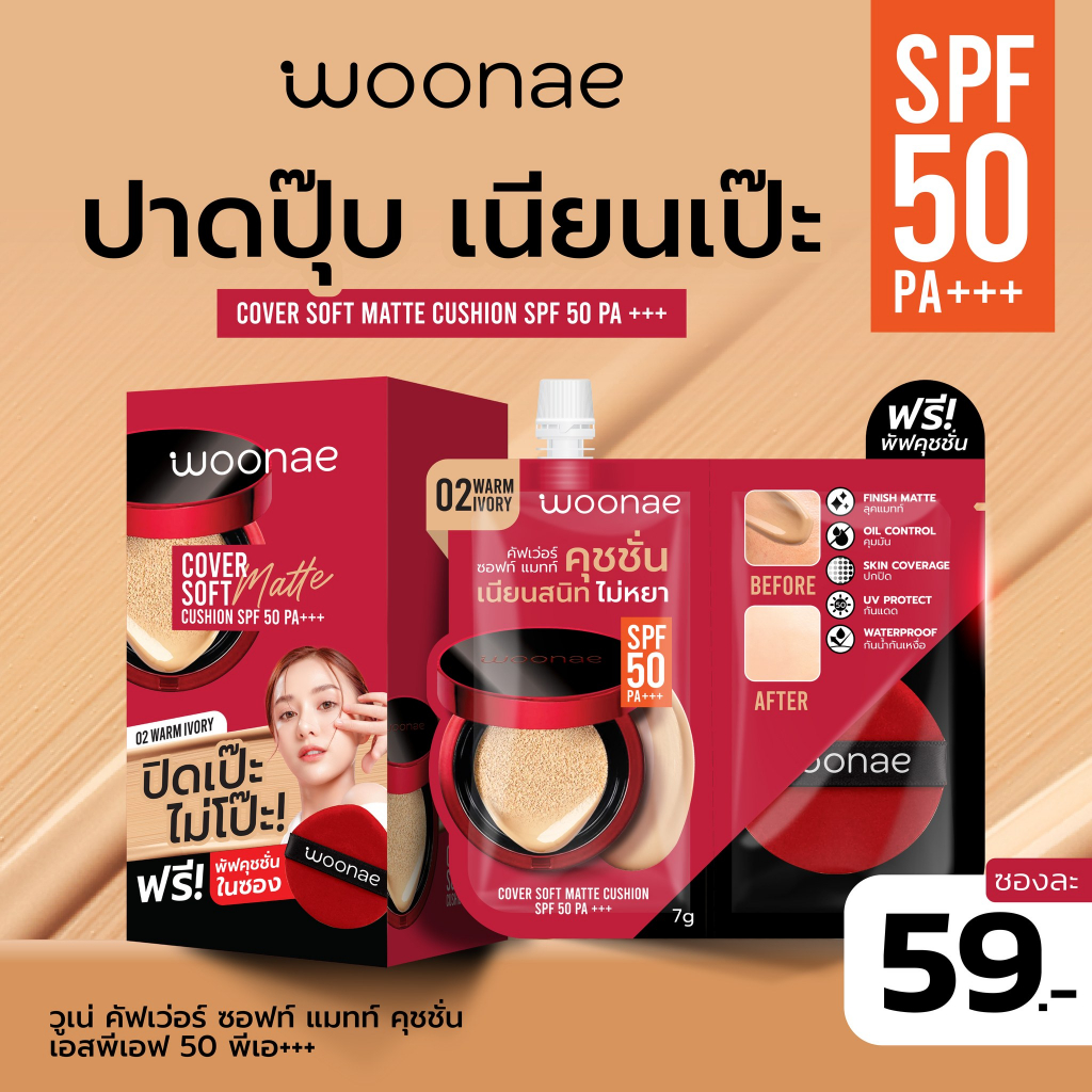 (กล่องX6ซอง) Woonae Cover Soft Matte Cushion SPF 50 PA+++ วูเน่ คัฟเว่อ แมทท์ คุชชั่น เอสพีเอฟ 30 พีเอ +++