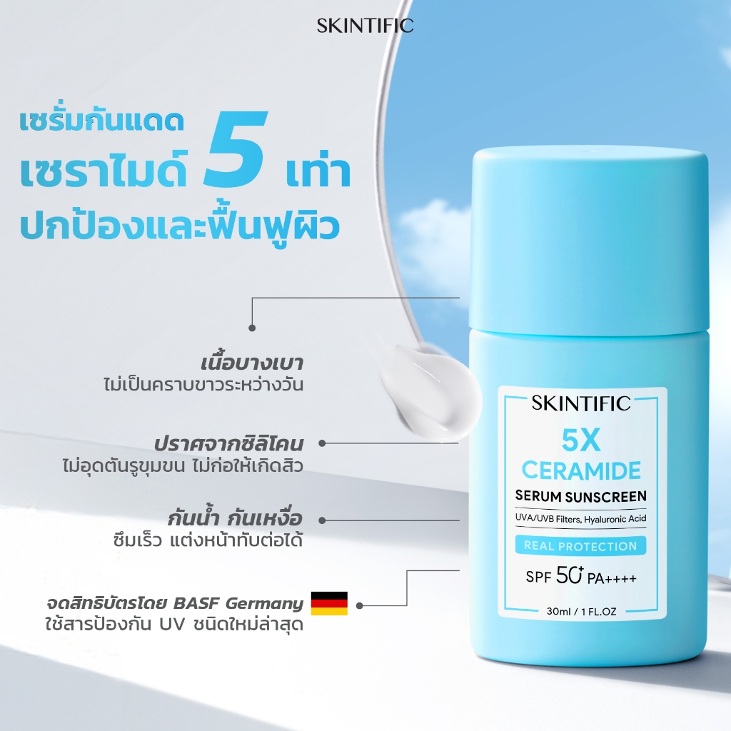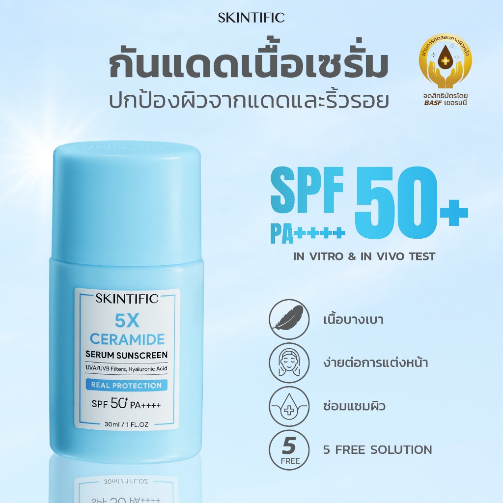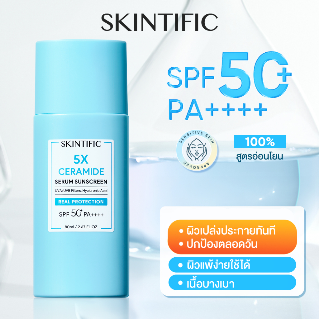 【POND PHUWIN'S PICK】SKINTIFIC 5X SUNSCREEN SPF50 PA++++ | ครีมกันแดด กันน้ำ เนื้อบางเบา คุมมัน 50+ PA++++ ปกป้องผิวจาก UVA/UVB