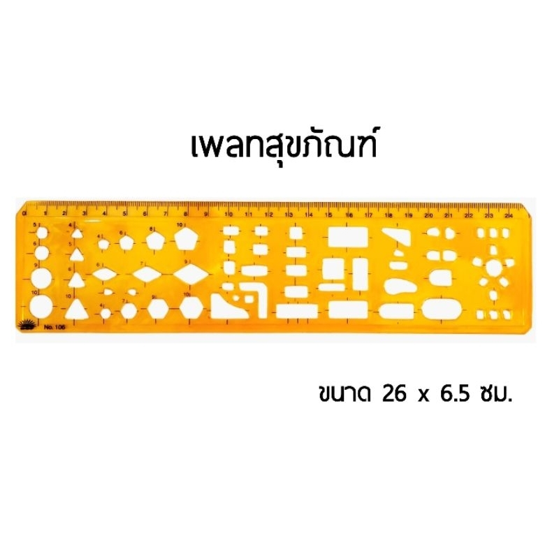ไม้บรรทัดเทมเพลตยาว ไ้บรรทัดเขียนแบบ รูปทรงต่าง ๆ คละสี Template No.101-108