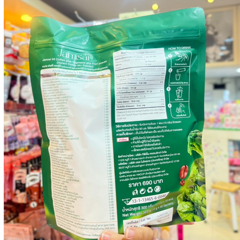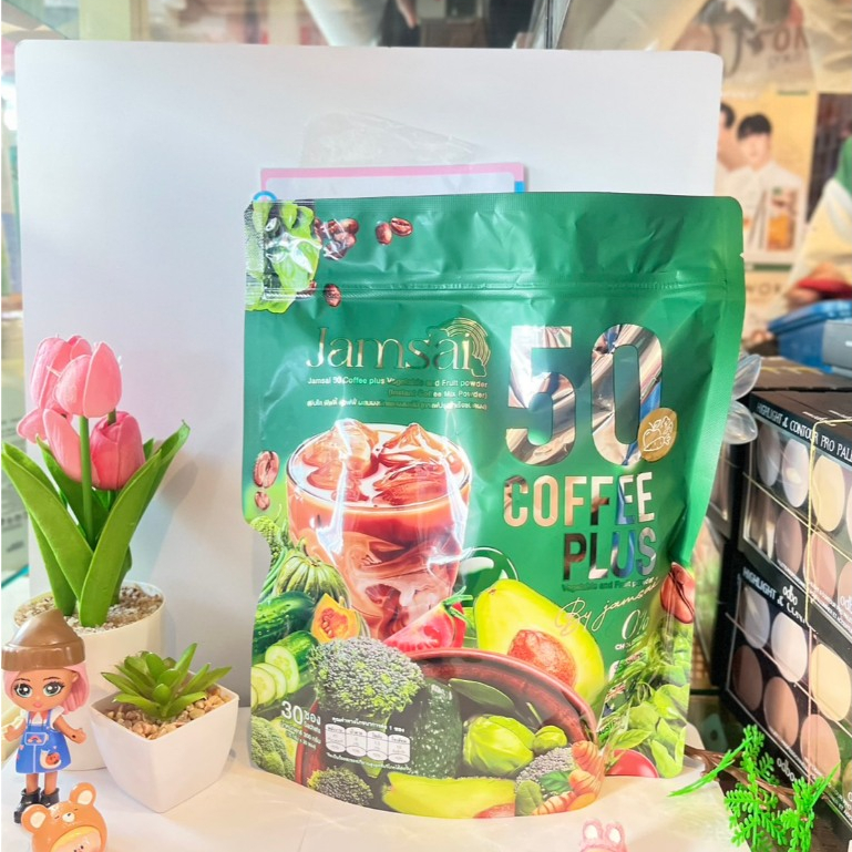 (ยกห่อ) แจ่มใส Jamsai 50 คอฟฟี่ พลัส กาแฟผสมสารสกัดผักผลไม้ 30 ซอง