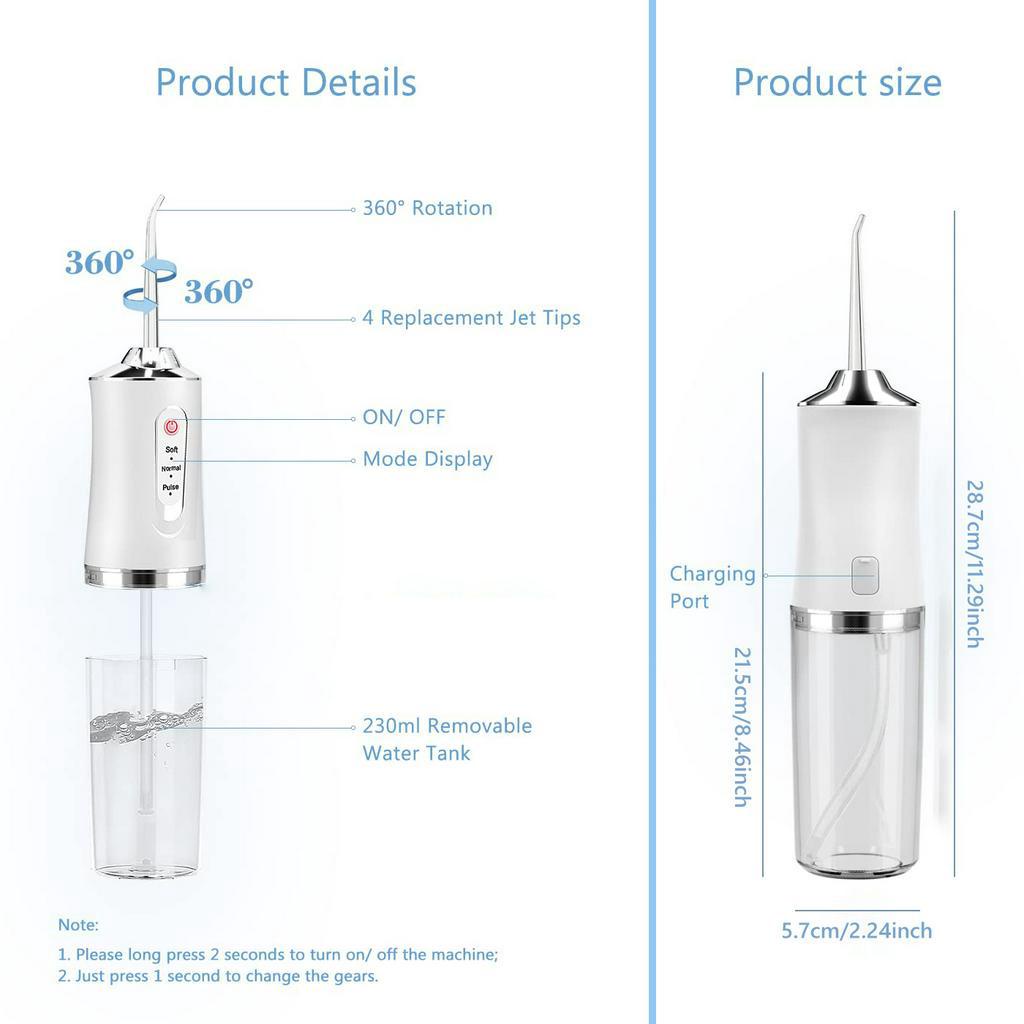 ไฟฟ้าน้ํา ไหมขัดฟัน ชลประทาน ช่องปากไร้สายสําหรับฟัน3โหมด4เคล็ดลับเจ็ทไหมขัดฟันแบบพกพา