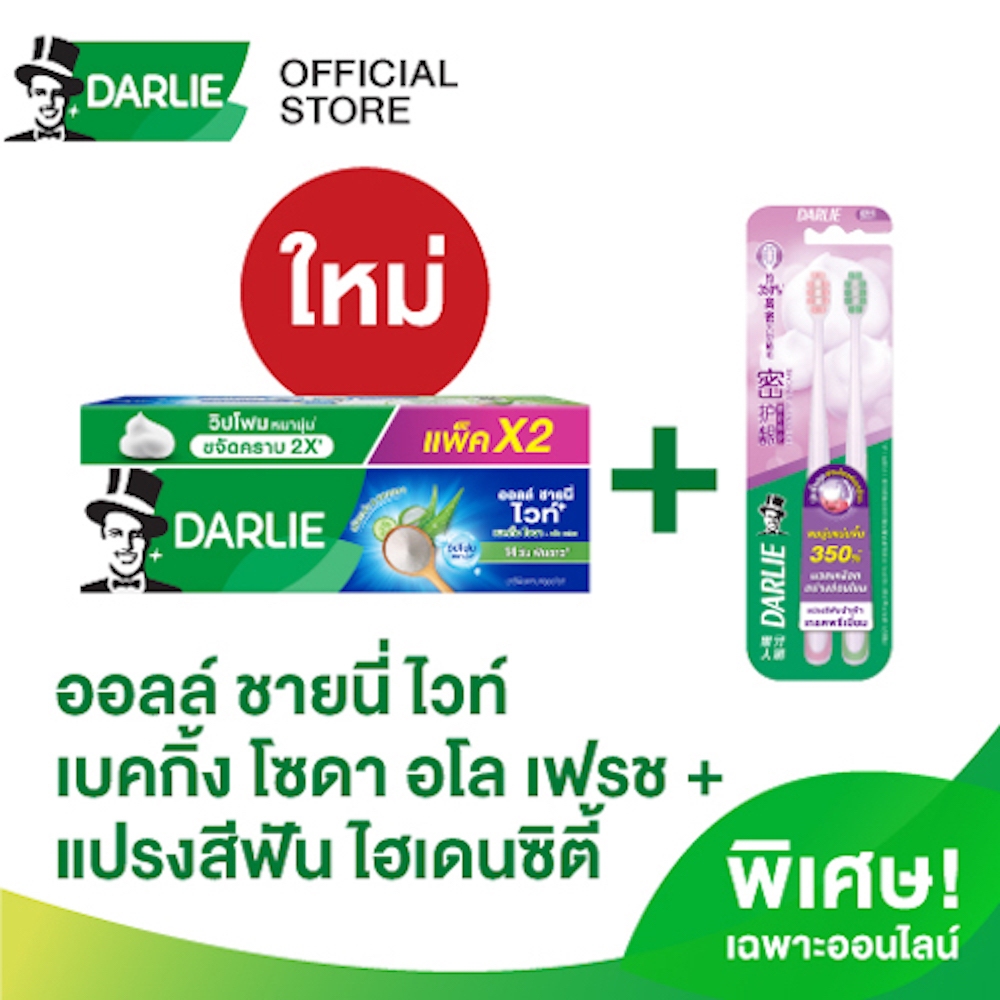 [เซ็ต] ดาร์ลี่ ยาสีฟัน ออลล์ ชายนี่ ไวท์ เบคกิ้ง โซดา - อโล เฟรช ขนาด 140 กรัม แพ็คคู่+ แปรงสีฟัน ไฮเดนซิตี้