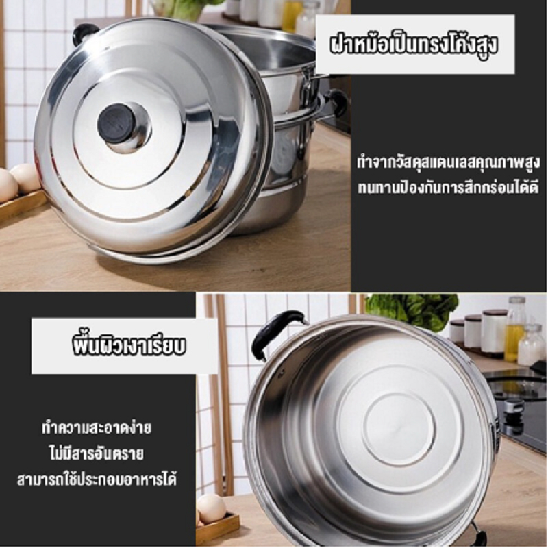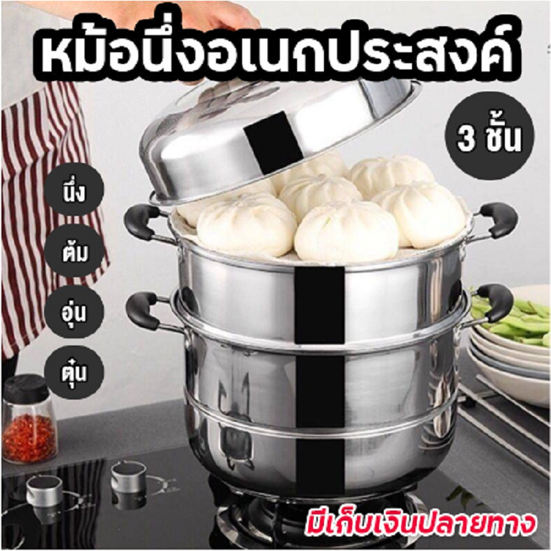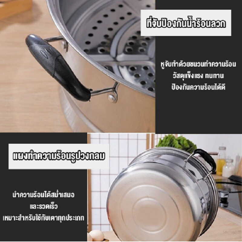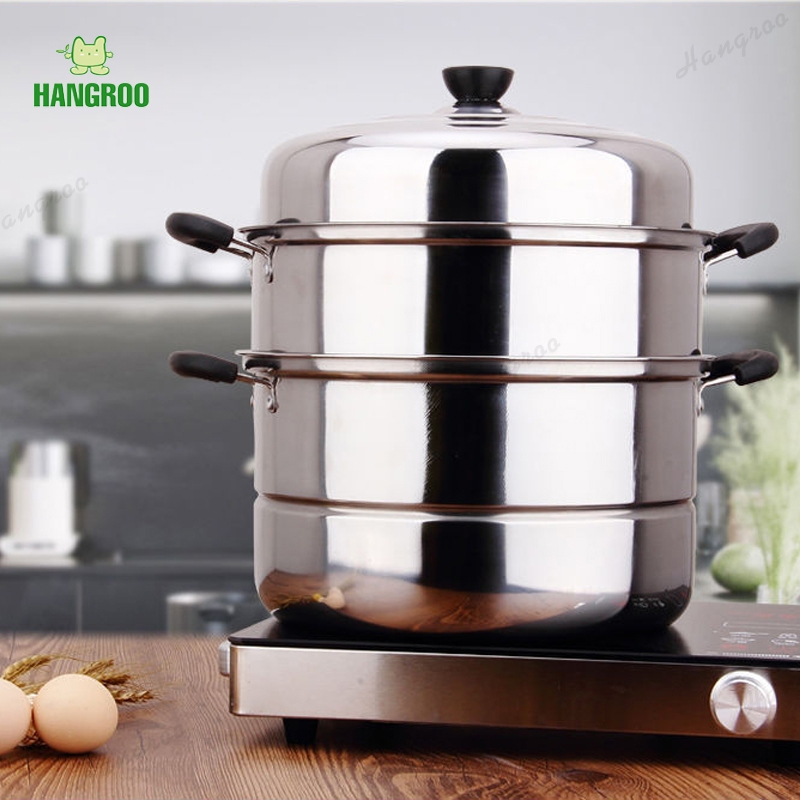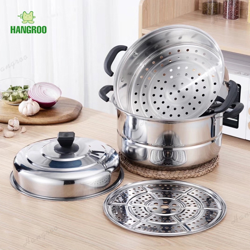 HANGROO POT-A หม้อนึ่งสแตนเลส ใช้ได้ทุกเตา หม้อ + ซึ้งสแตนเลส ทำความร้อนรวดเร็ว มีหลายขนาด
