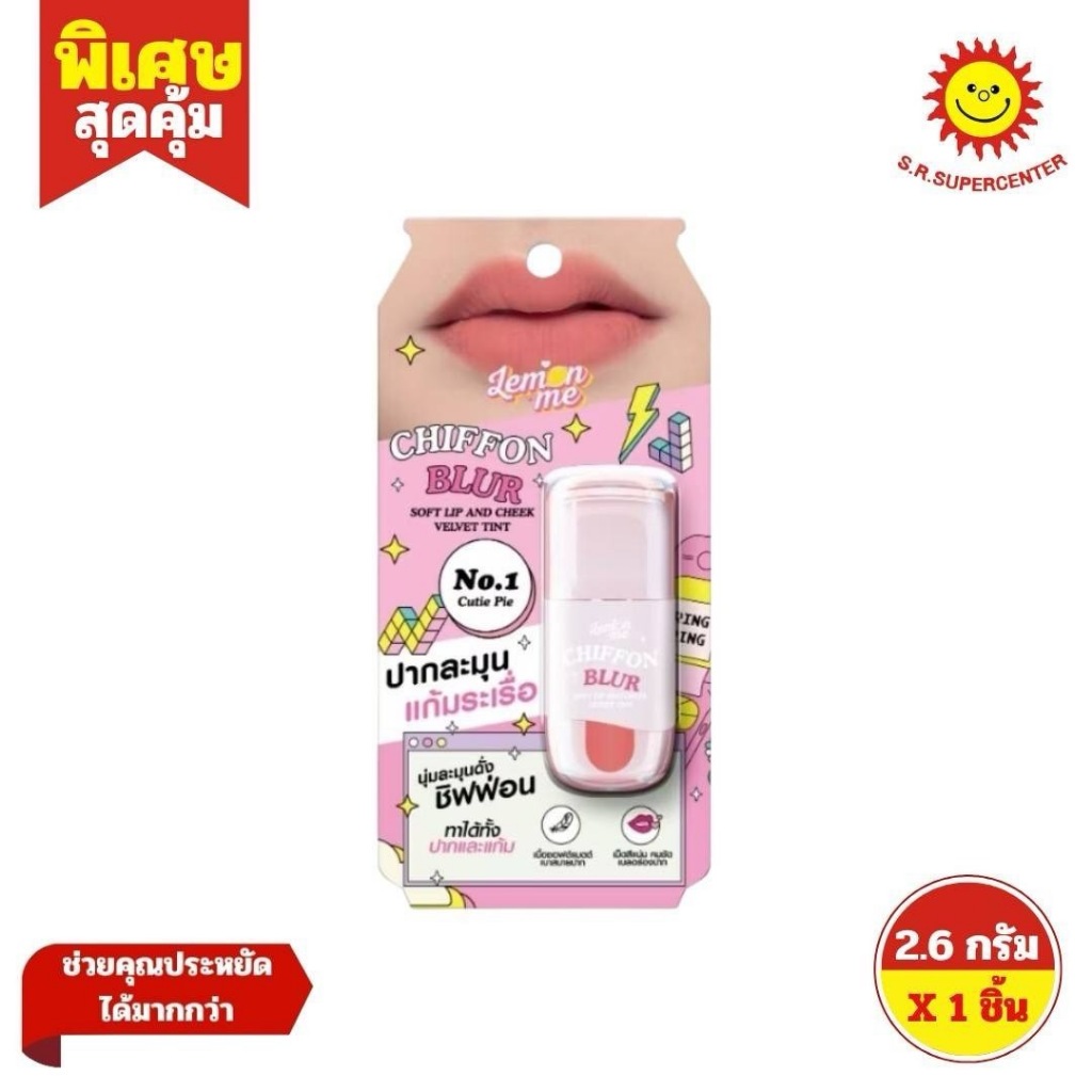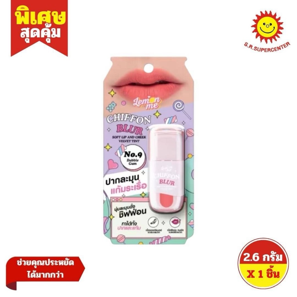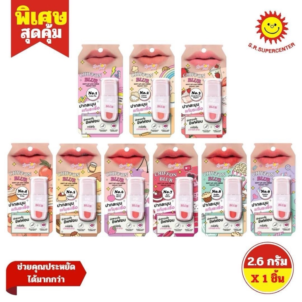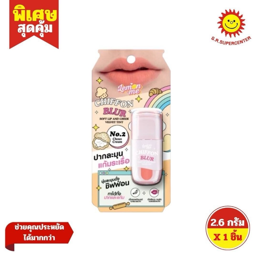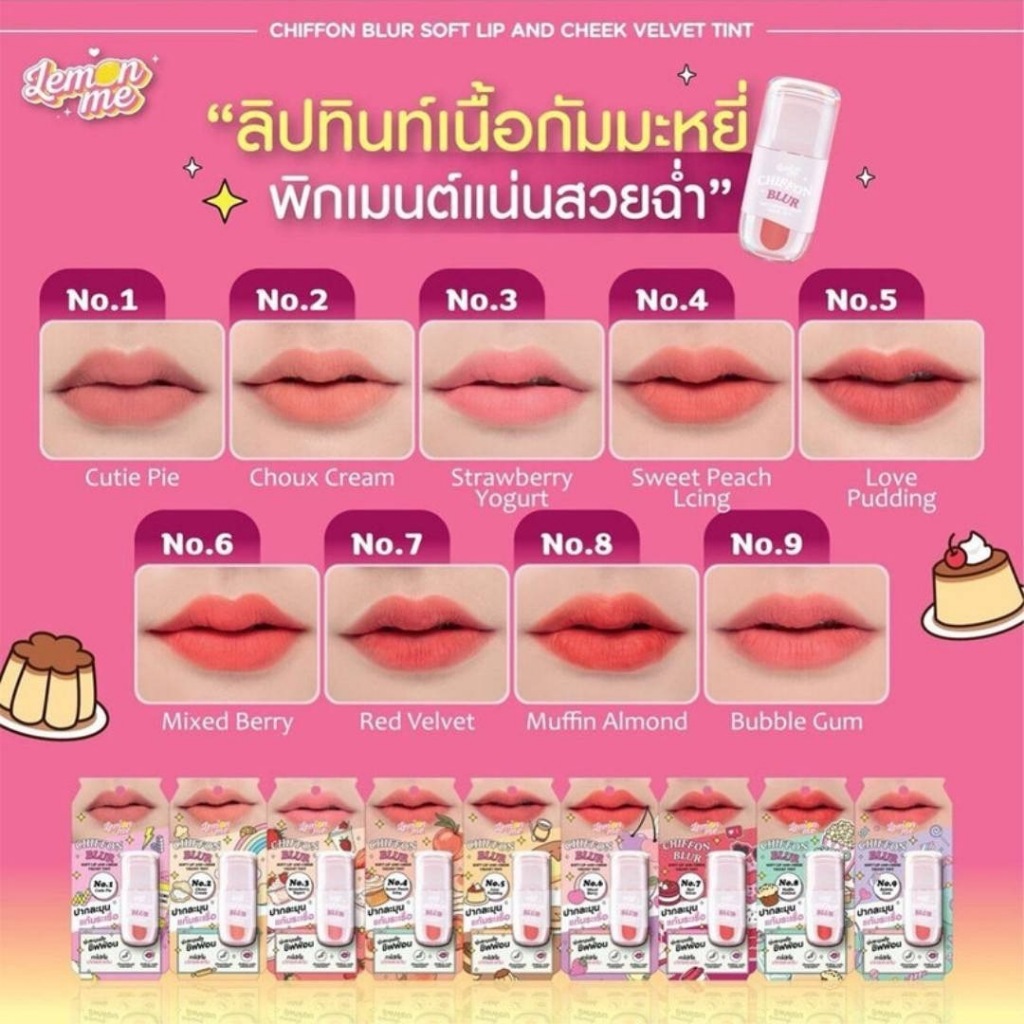 Lemon Me เลม่อน มี ชิฟฟ่อน เบลอ ซอฟต์ ลิป แอนด์ ชีก เวลเว็ท ทินท์ เบอร์ 1-9 ขนาด 2.6 กรัม ×1 ชิ้น