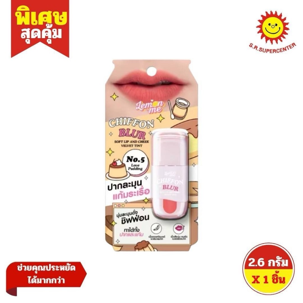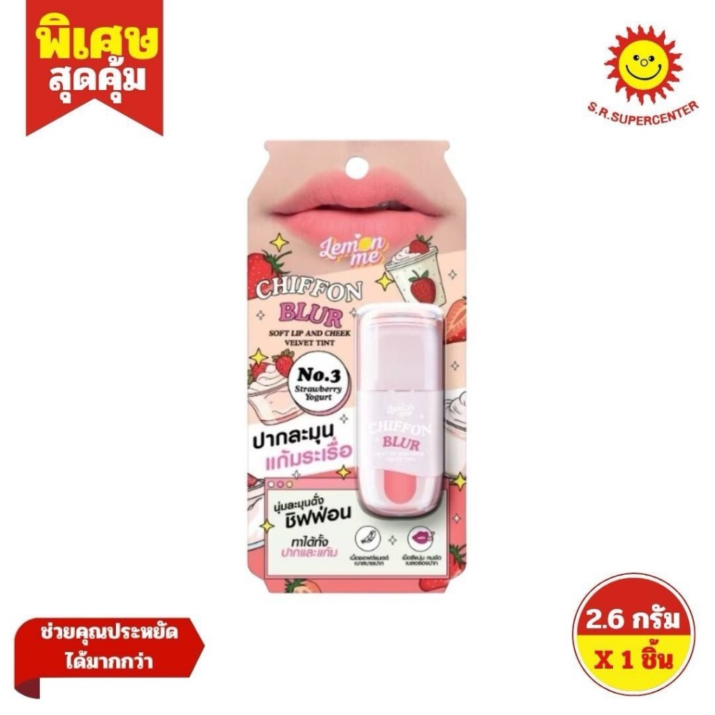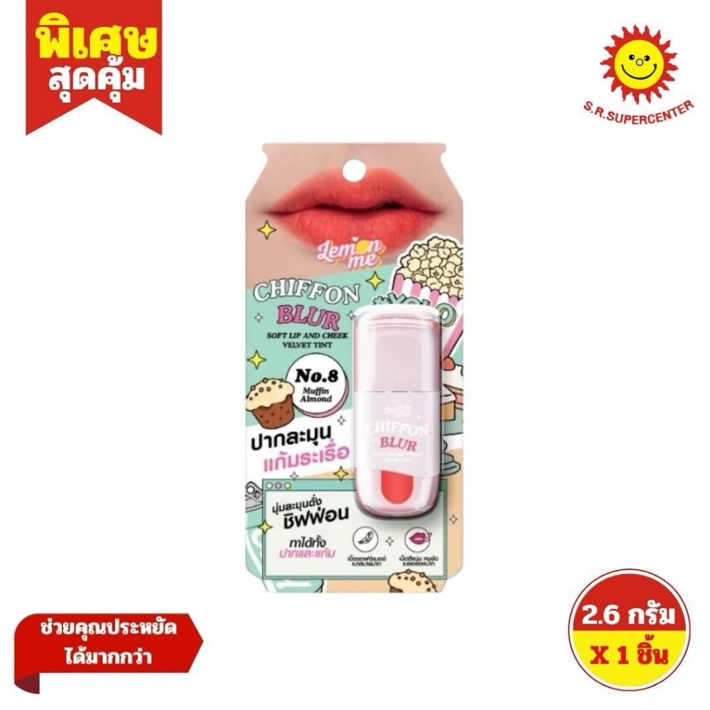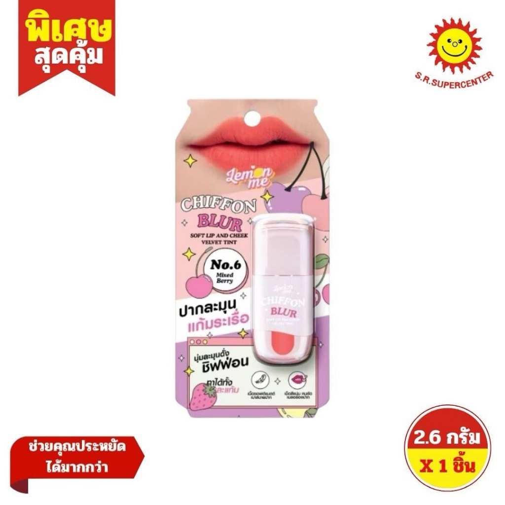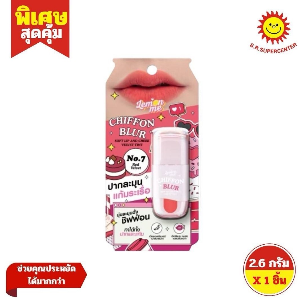 Lemon Me เลม่อน มี ชิฟฟ่อน เบลอ ซอฟต์ ลิป แอนด์ ชีก เวลเว็ท ทินท์ เบอร์ 1-9 ขนาด 2.6 กรัม ×1 ชิ้น