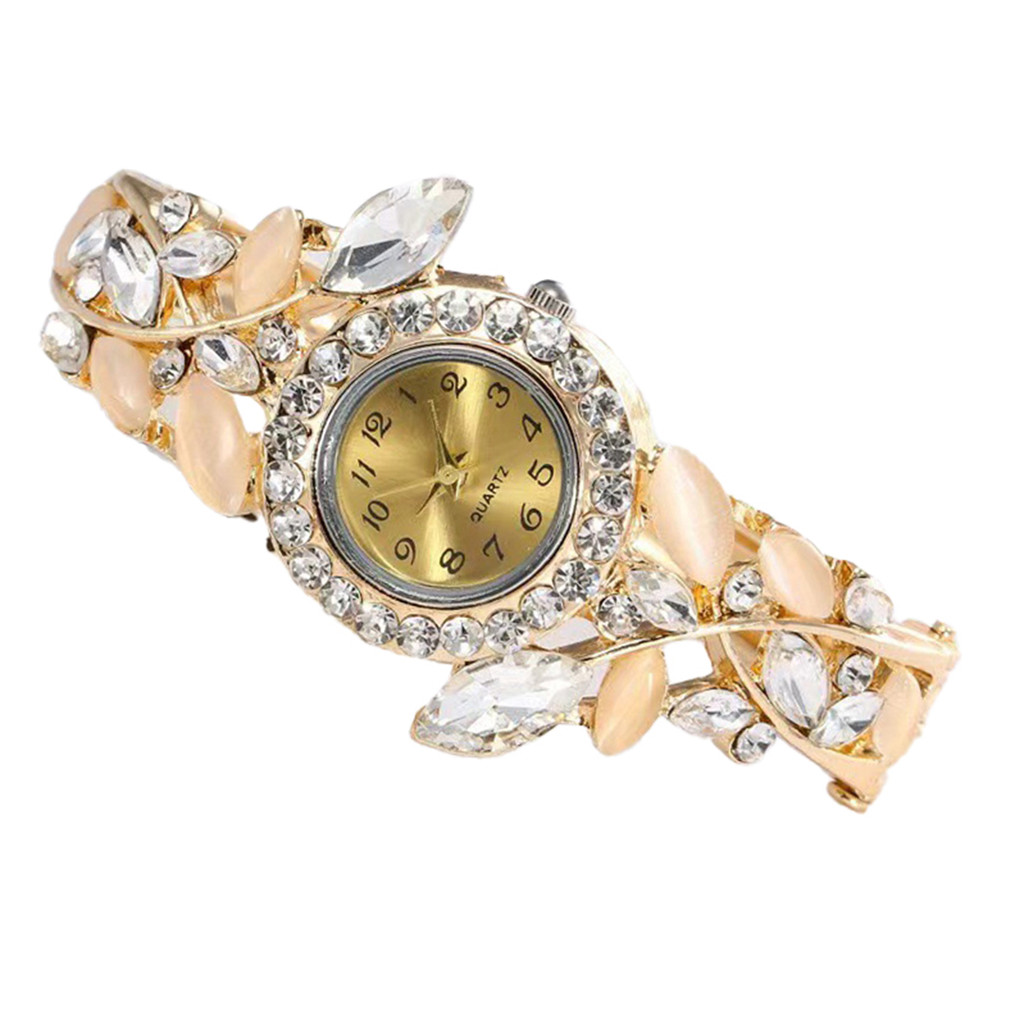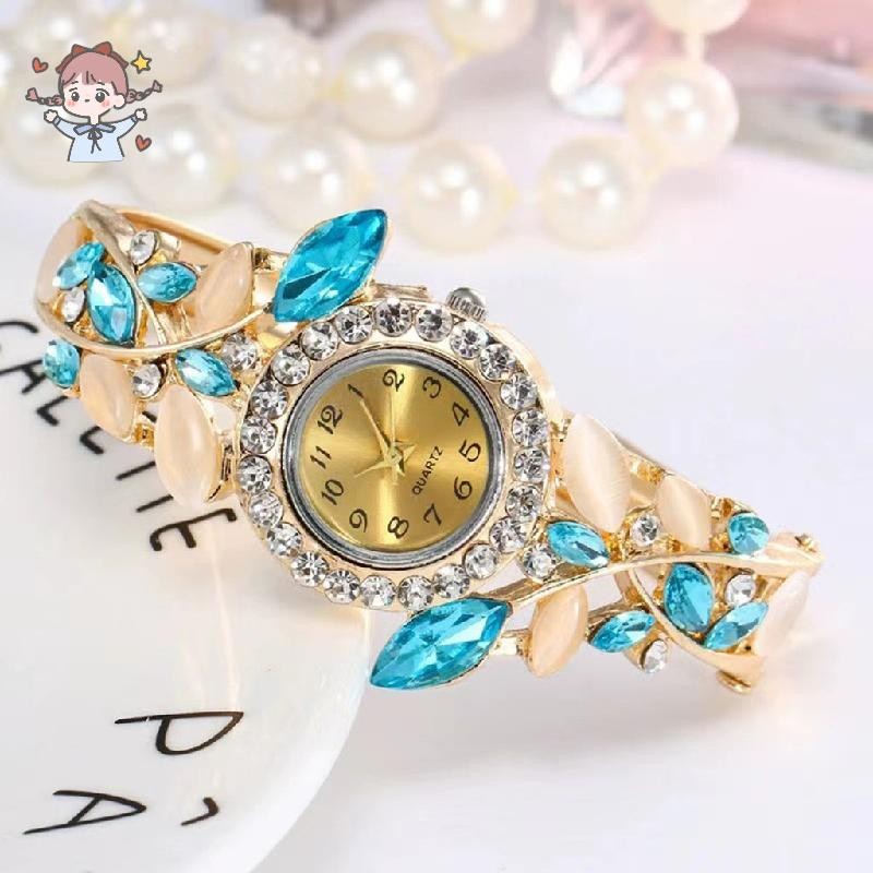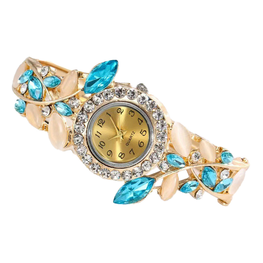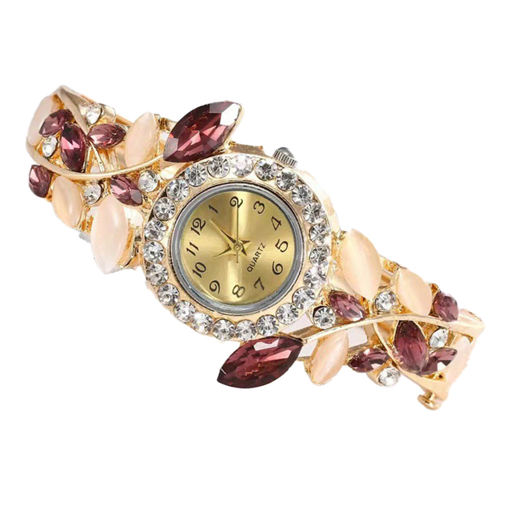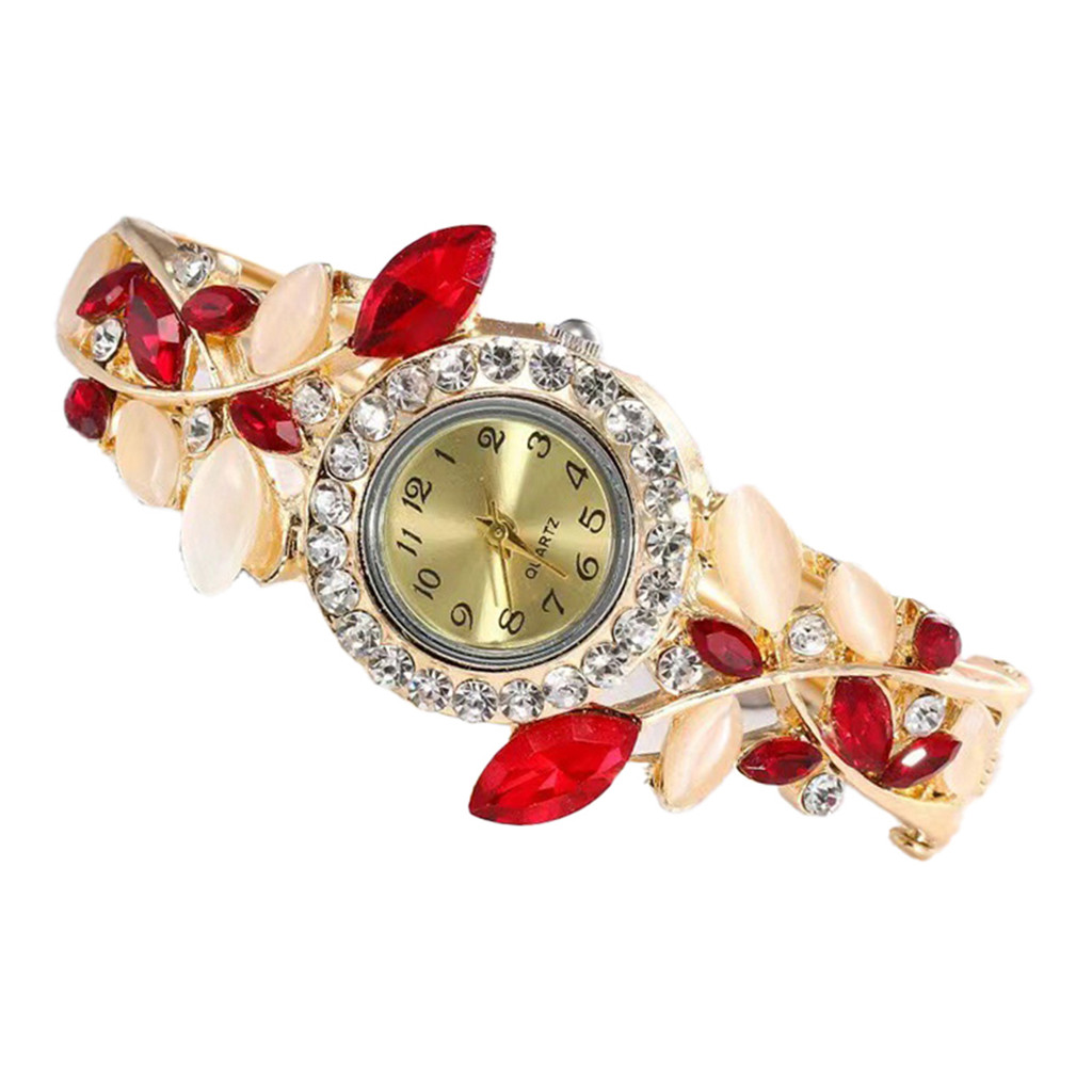 นาฬิกาควอทซ์ผู้หญิงหรูหราพร้อมเน้นและสายโลหะหลากสี