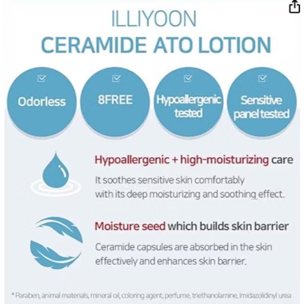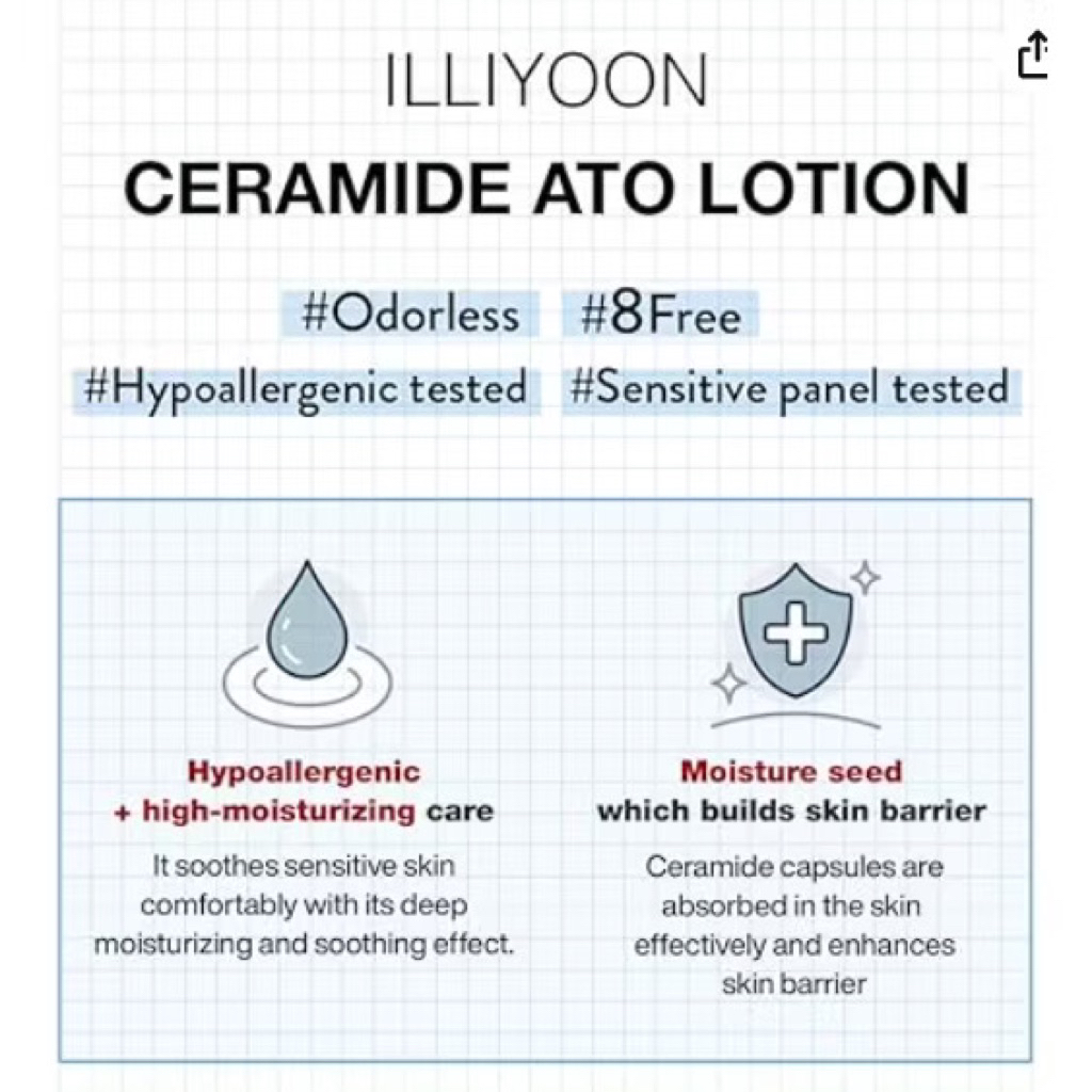 ILLIYOON Ceramide Ato Lotionซึ่งเป็นโลชั่นบำรุงผิวหน้าและผิวกายสำหรับผิวแห้งและแพ้ง่าย