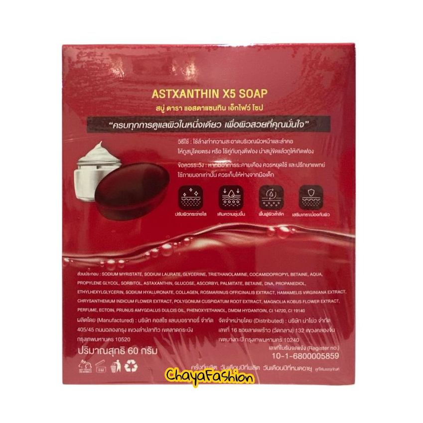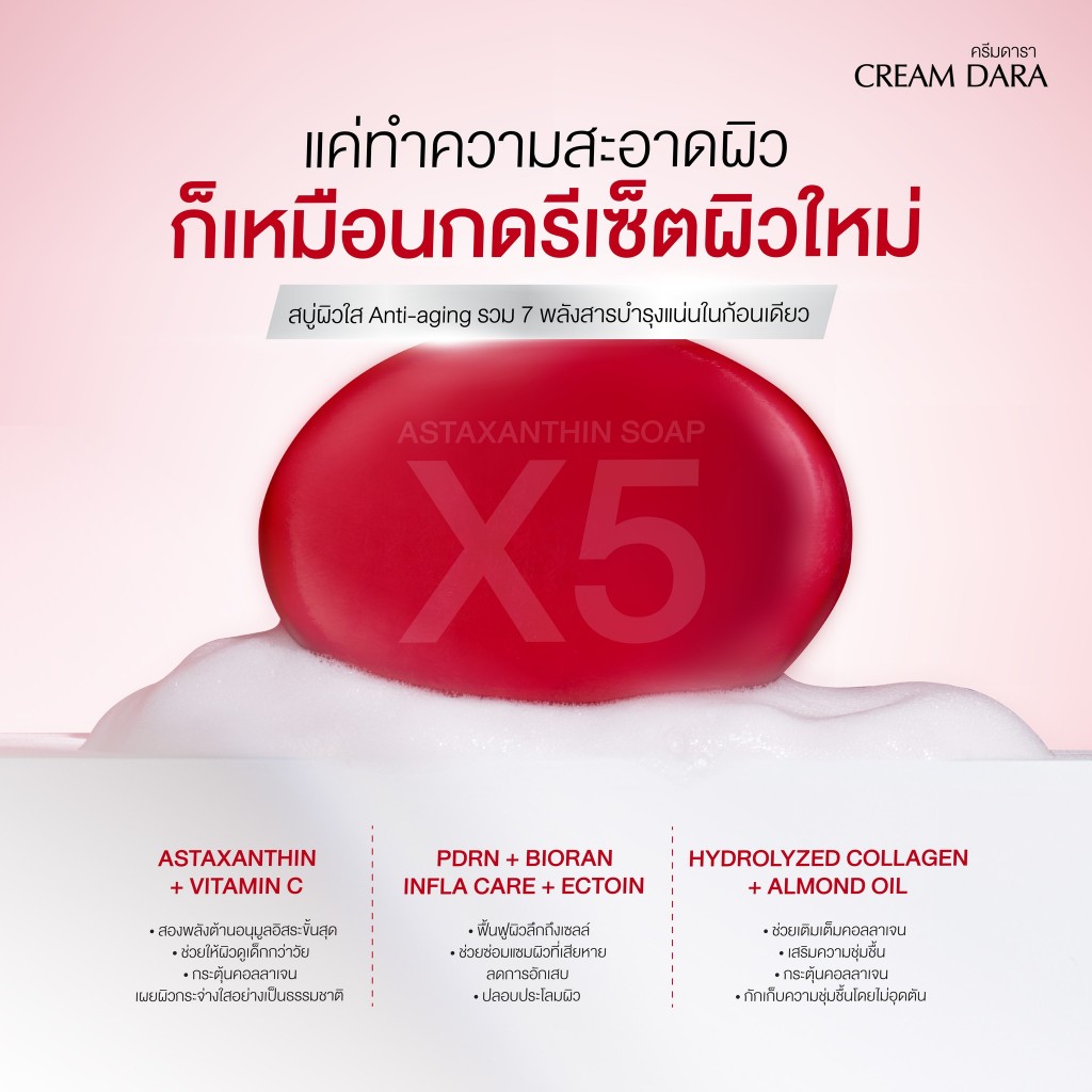 *SALE* DARA SOAP สบู่ดารา แอสตาแซนทีน เอ็กไฟว์ โซป 60 กรัม Exp14/07/28 ครีมดารา