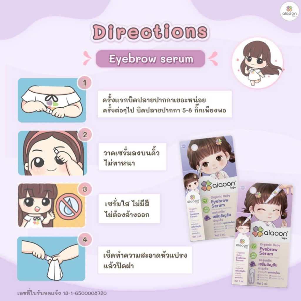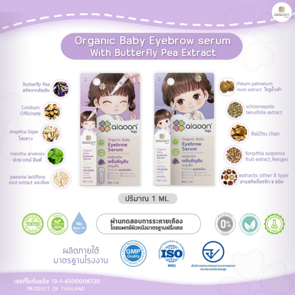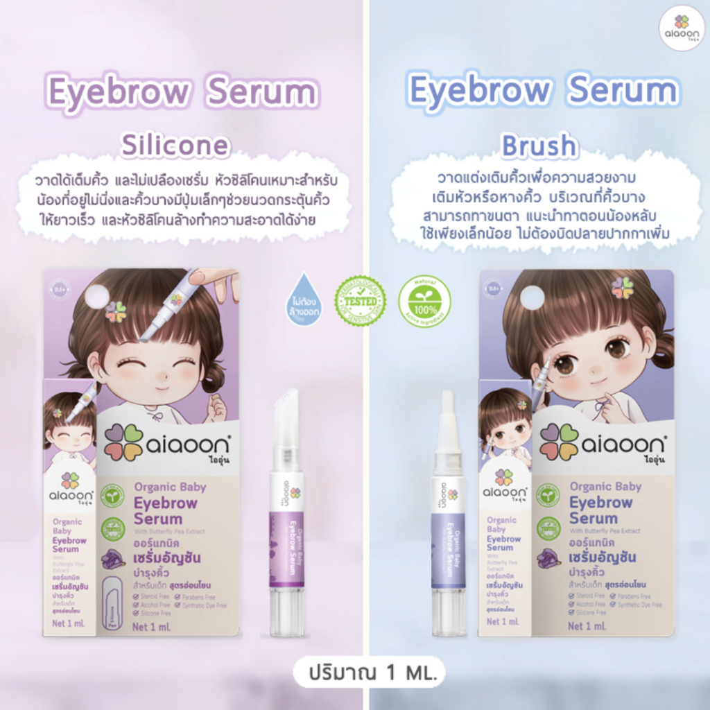 aiaoon ไออุ่น เซรั่มอัญชันทาคิ้วเด็ก เซรั่มอัญชัน บำรุงคิ้ว [สำหรับเด็ก 1 เดือนขึ้นไป] เพื่อคิ้วดกดำ เรียงตัวสวย (1 ml.)