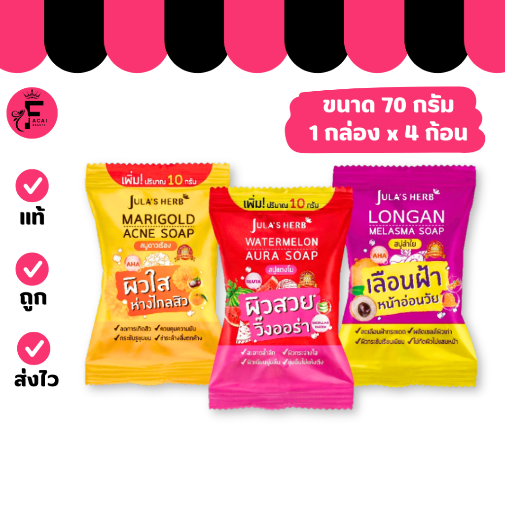 (แบบก้อน/ยกกล่อง) Jula's Herb สบู่ 3 สูตร ดูแลผิวหน้า จุฬาเฮิร์บ (ปริมาณ 70 กรัม)