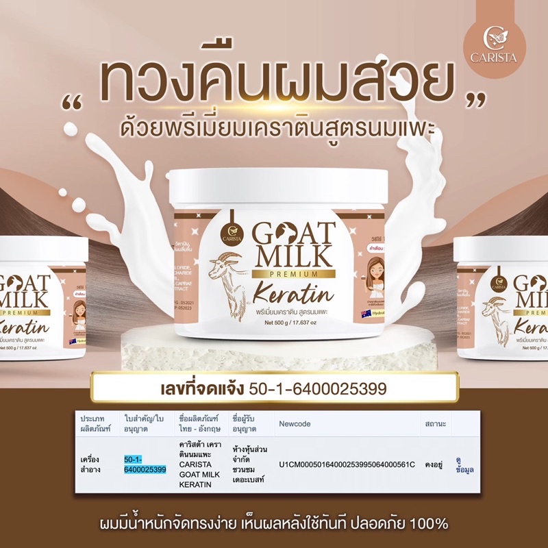 Goat Milk Premium Keratin เคราติน สูตรนมแพะ [แบบซอง-แบบกระปุก]