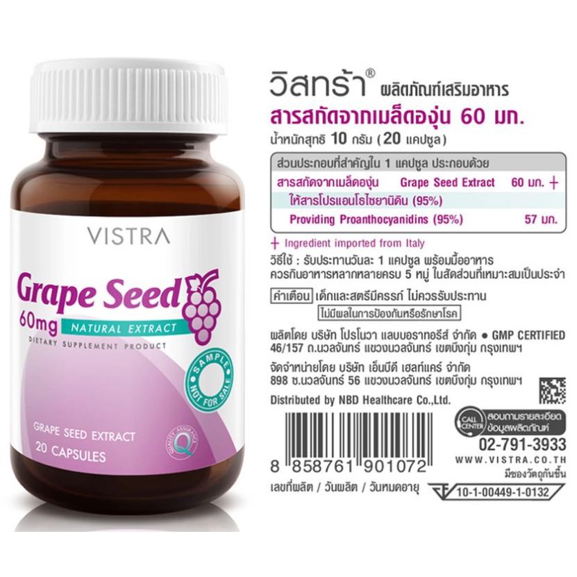 Vistra grape seed 30 เม็ด เมล็ดองุ่น exp.02/27 ฝ้า กละ จุดด่างดำ เส้นเลือดขอด