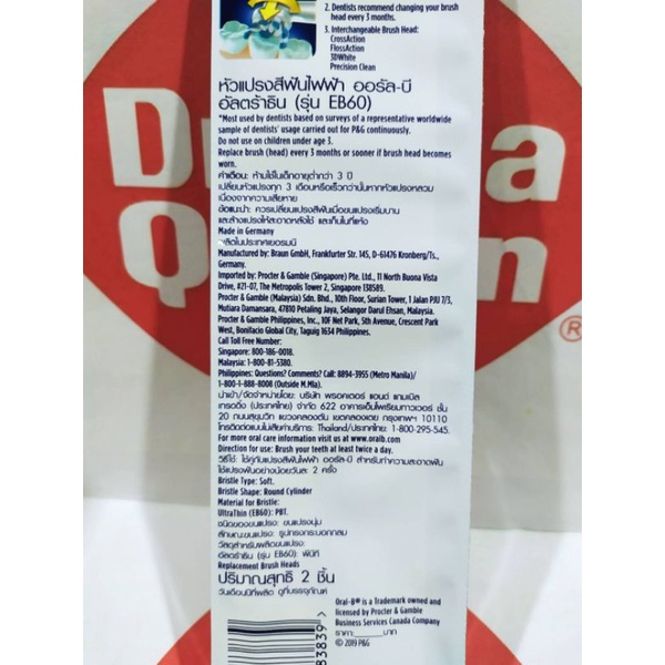 หัวแปรงสีฟันไฟฟ้า ออรัลบี อัลตร้าธิน Oral B Ultrathin Toothbrush Heads 2 อันต่อ 1 แพค