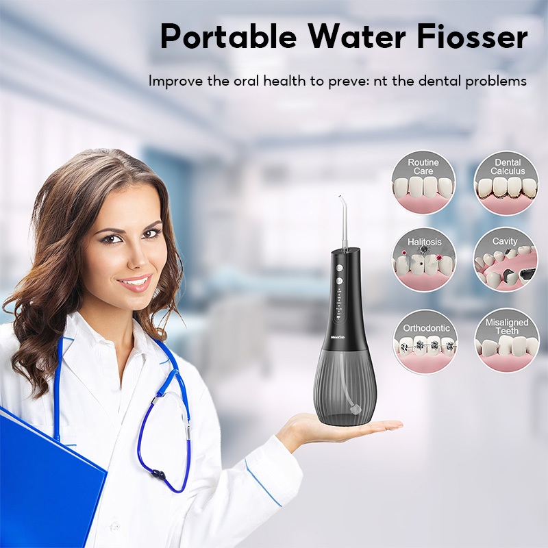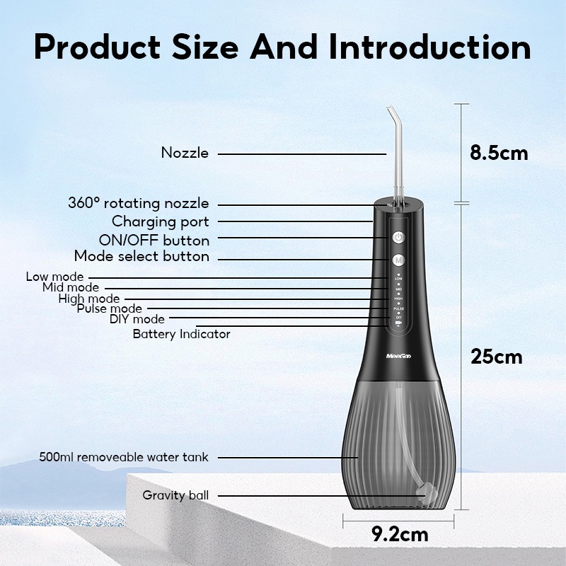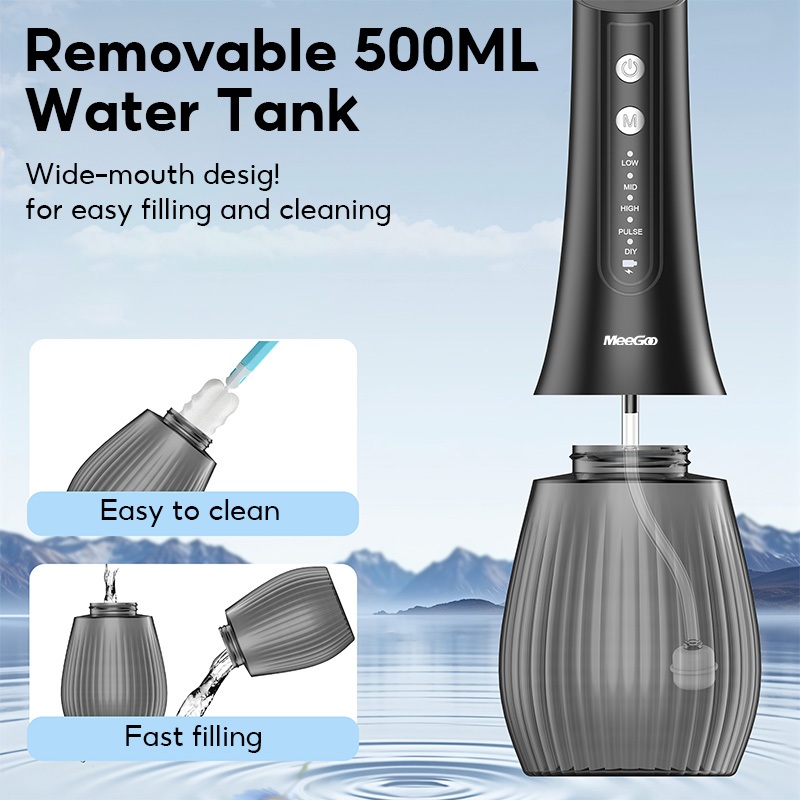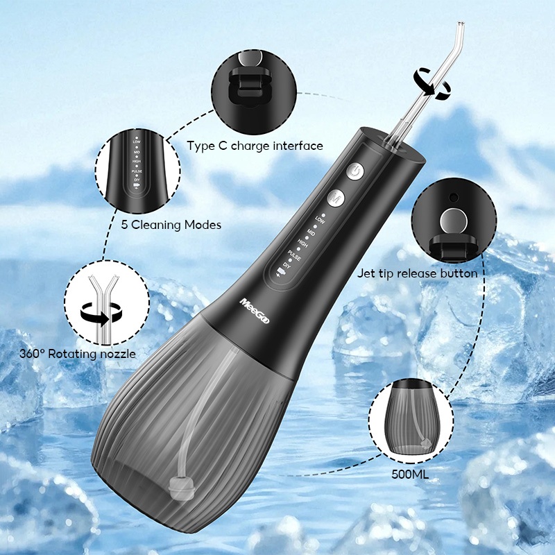 MeeGoo เครื่องล้างฟัน Water Flosser 500ML เครื่องทำความสะอาดฟัน แรงดันน้ำ 80-120 PSI IPX7 กันน้ำสมาร์ ทไฟฟ้าปาก Irrigator