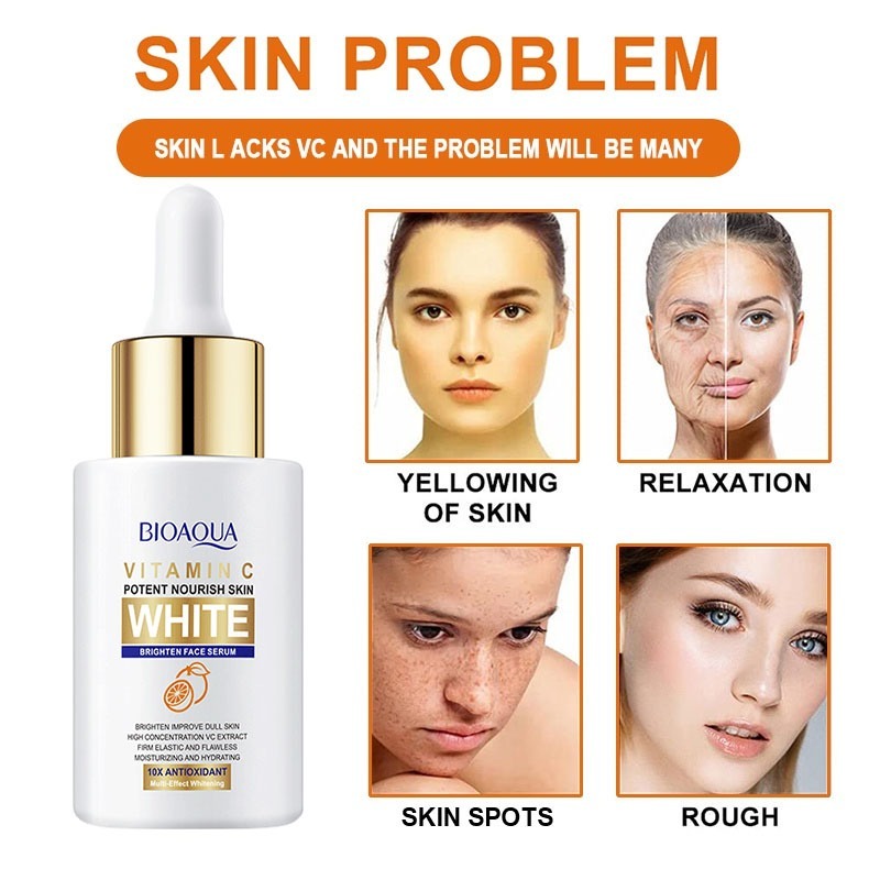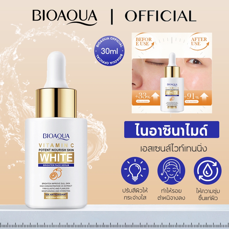 BIOAOUA เซรั่มวิตามินซีผสมสด บำรุงผิวใส วิตามินซีสีขาวสดใส หน้ าเซรั่ม เอสเซ้นส์น้ำตบเพิ่มความชุ่มชื้น