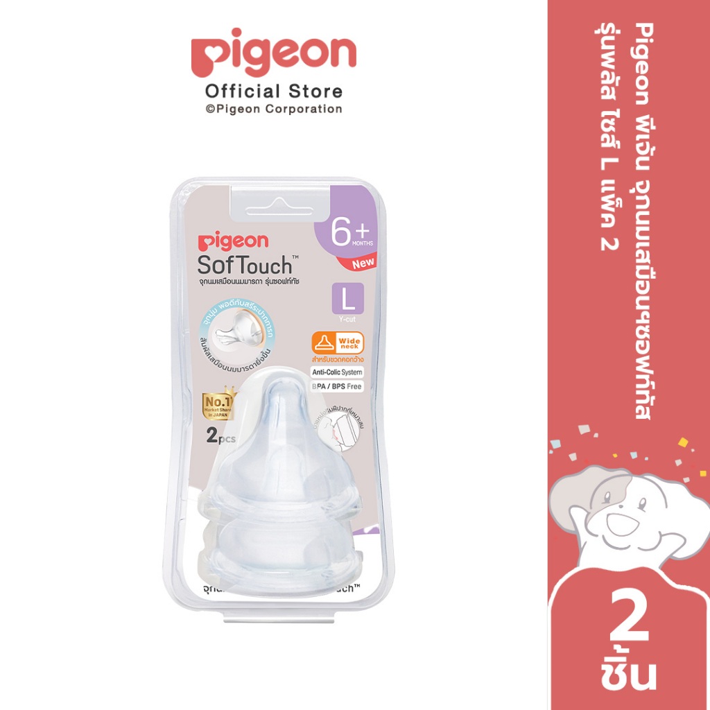 Pigeon พีเจ้น จุกนมเสมือนฯซอฟท์ทัส รุ่นพลัส ไซส์ L แพ็ค2