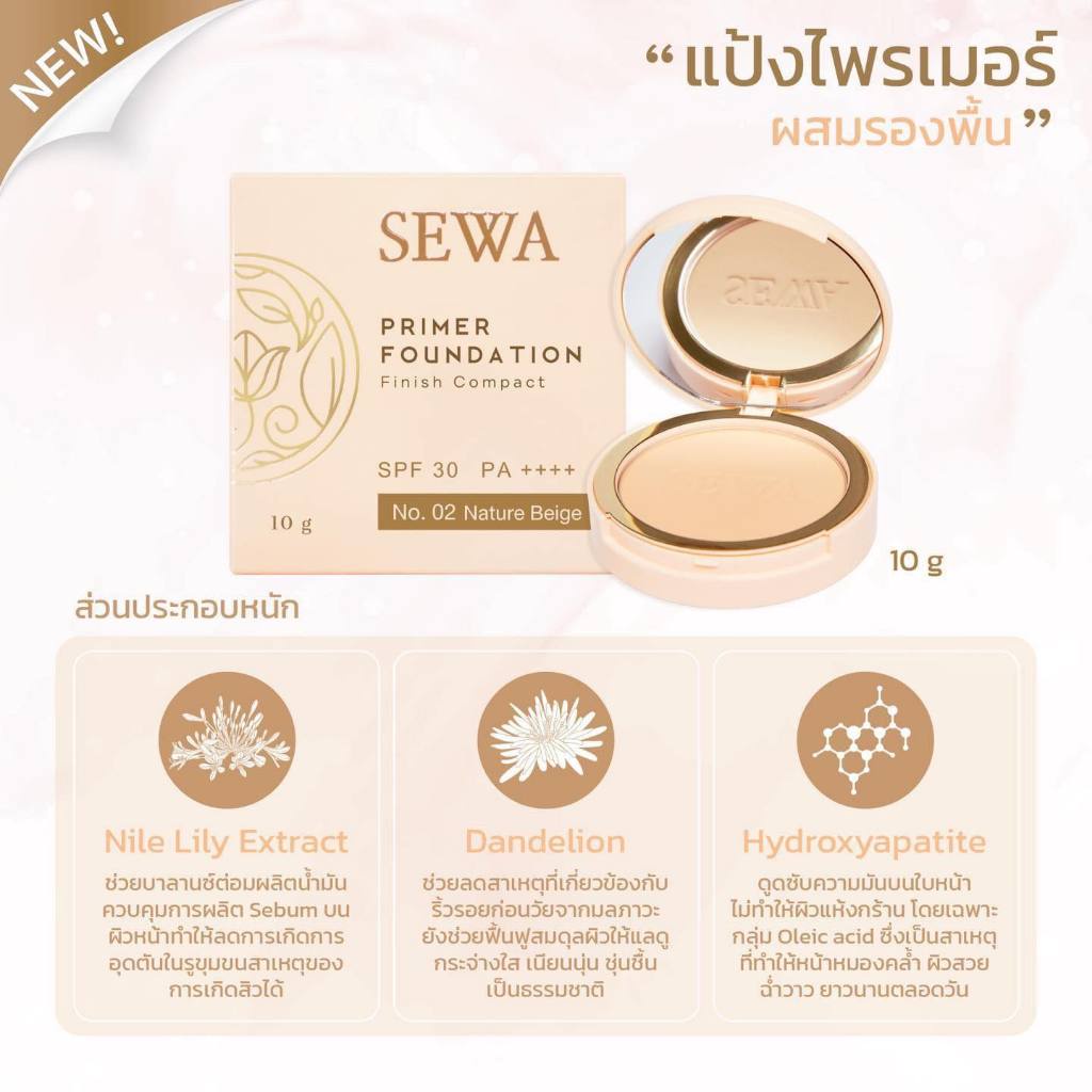 (แป้งพัฟ) Sewa Primer Foundation Finish Compact SPF30 PA++++ 10g.