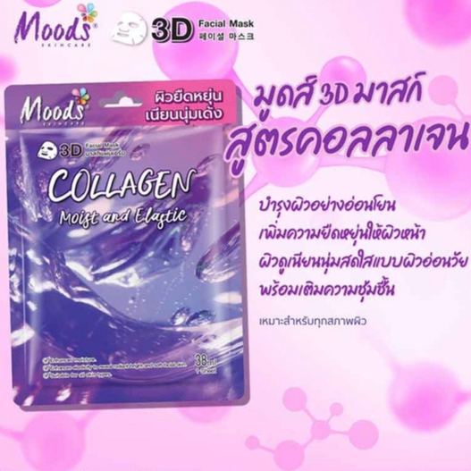 (1 ซอง) Moods 3D Facial Mask มาสก์แผ่นเซรั่ม มีให้เลือก 6 สูตร (ปริมาณ 38 ml.)