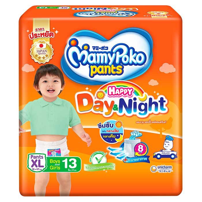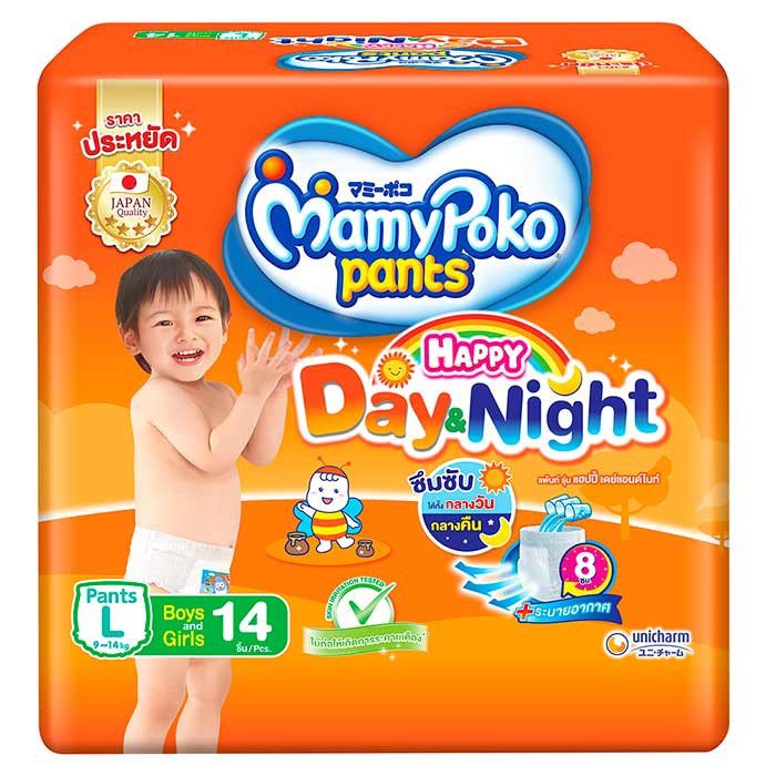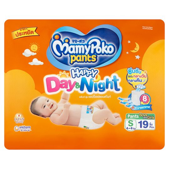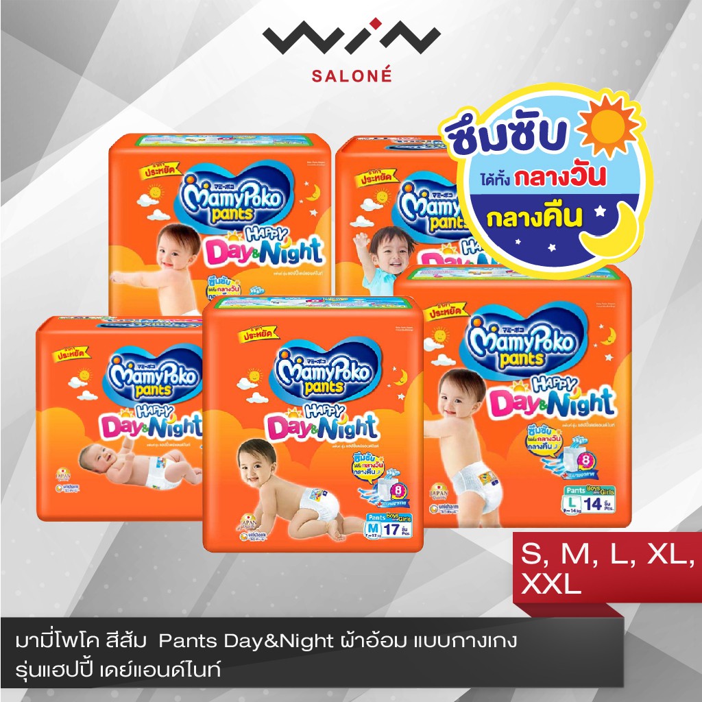 MamyPoko มามี่โพโค สีส้ม Pants Day&Night ผ้าอ้อม แบบกางเกง รุ่นแฮปปี้ เดย์แอนด์ไนท์ (ขนาด S, M, L, XL, XXL)