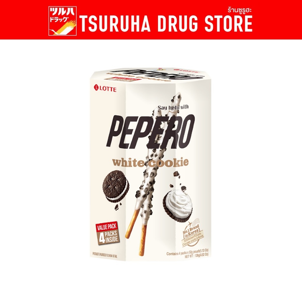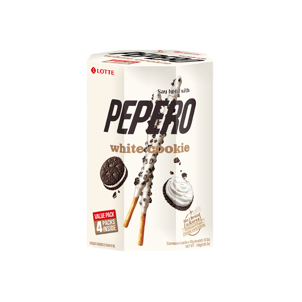 ลอตเต้ บิสกิตแท่งเคลือบ รสไวท์ช็อกโกแลตและคุกกี้ 128 ก. / Lotte Pepero White Chocolate Cookies 128g