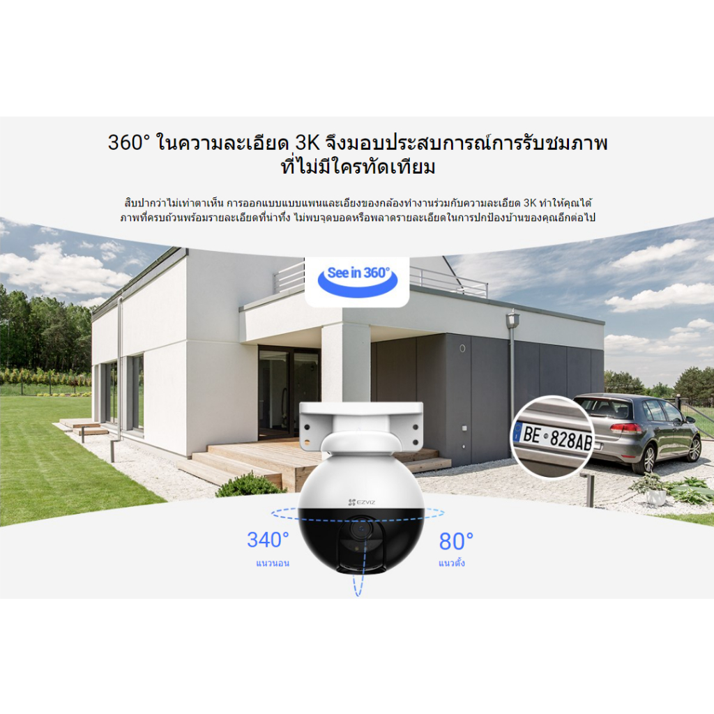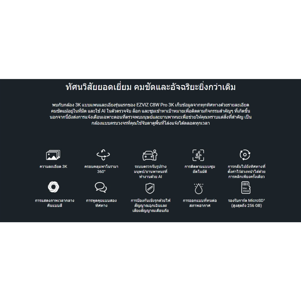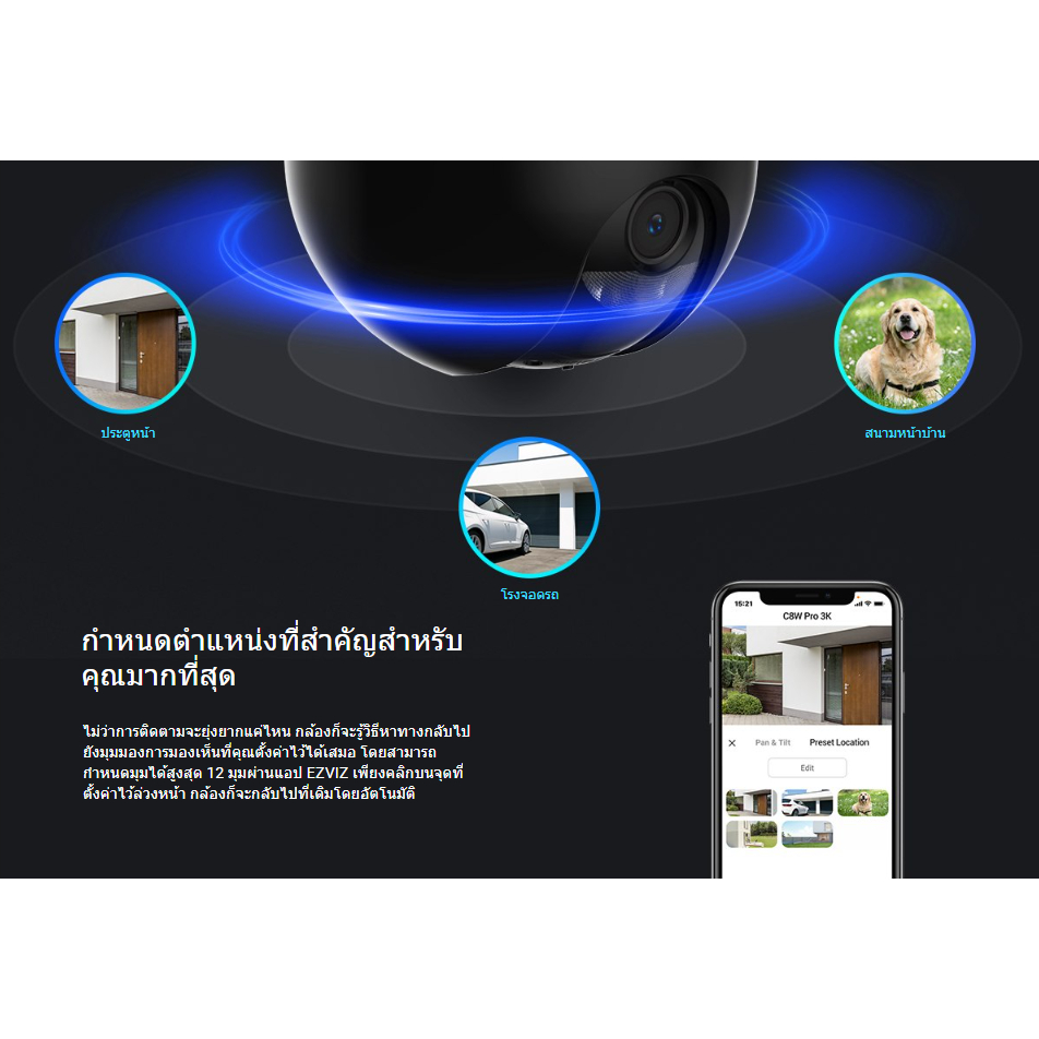 Ezviz รุ่น C8W Pro 3K 5MP PT Wi-Fi Camera H.265 : กล้องวงจรปิดภายนอก ( EZV-CS-C8W-5MP ) ประกันศูนย์ EZVIZ 2 ปี
