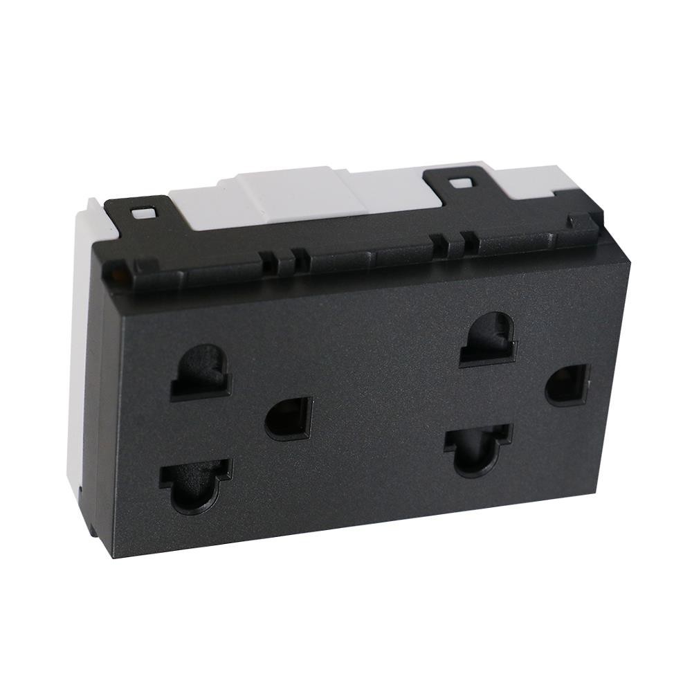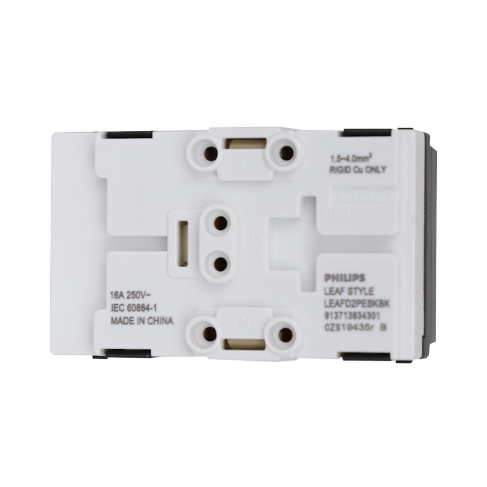 PHILIPS เต้ารับคู่ 3 ขา มีม่านนิรภัย LEAF สีดำ จัดส่งโดย HomePro