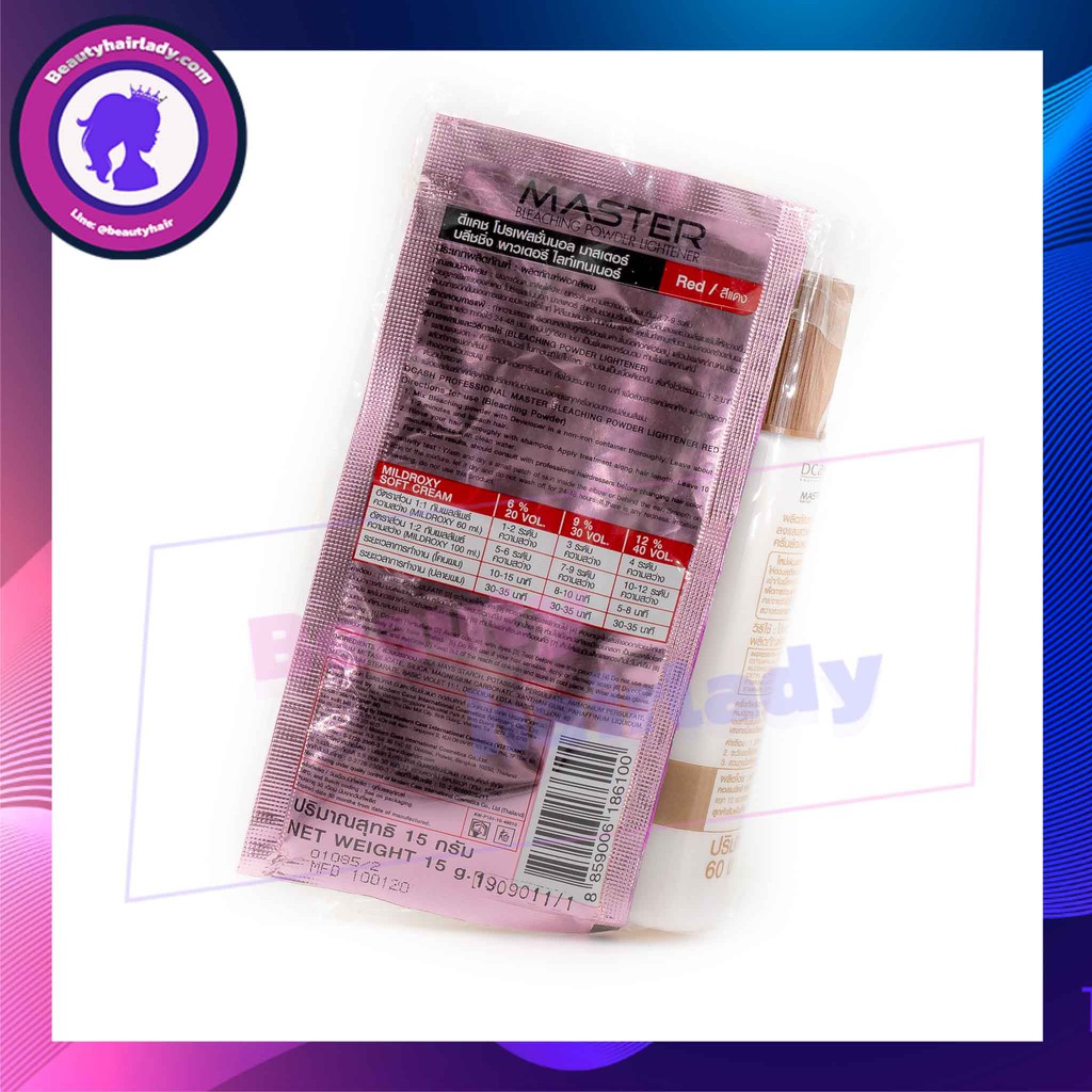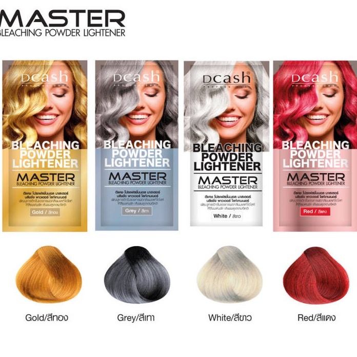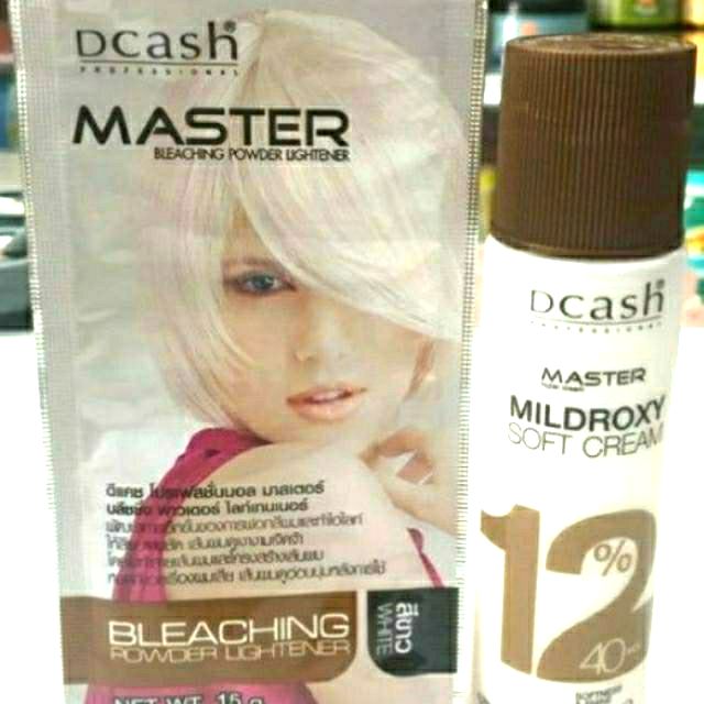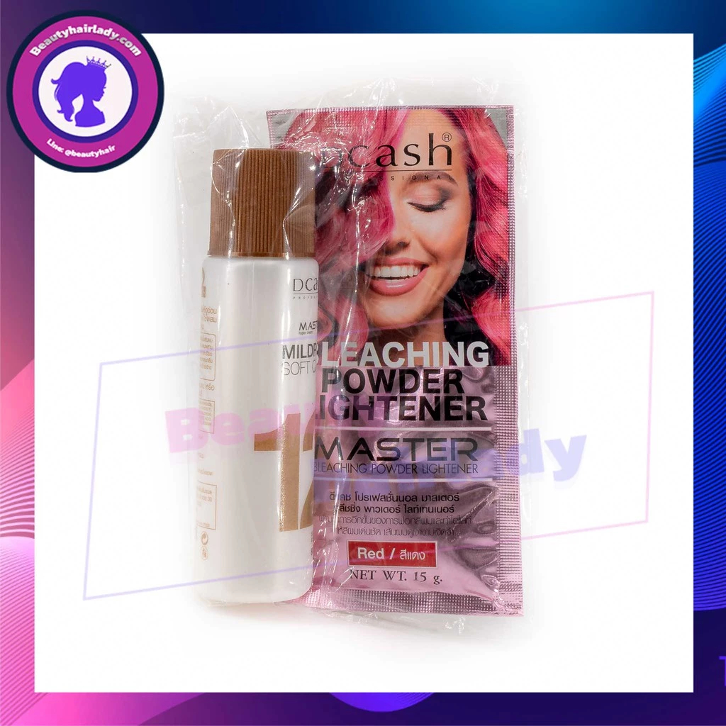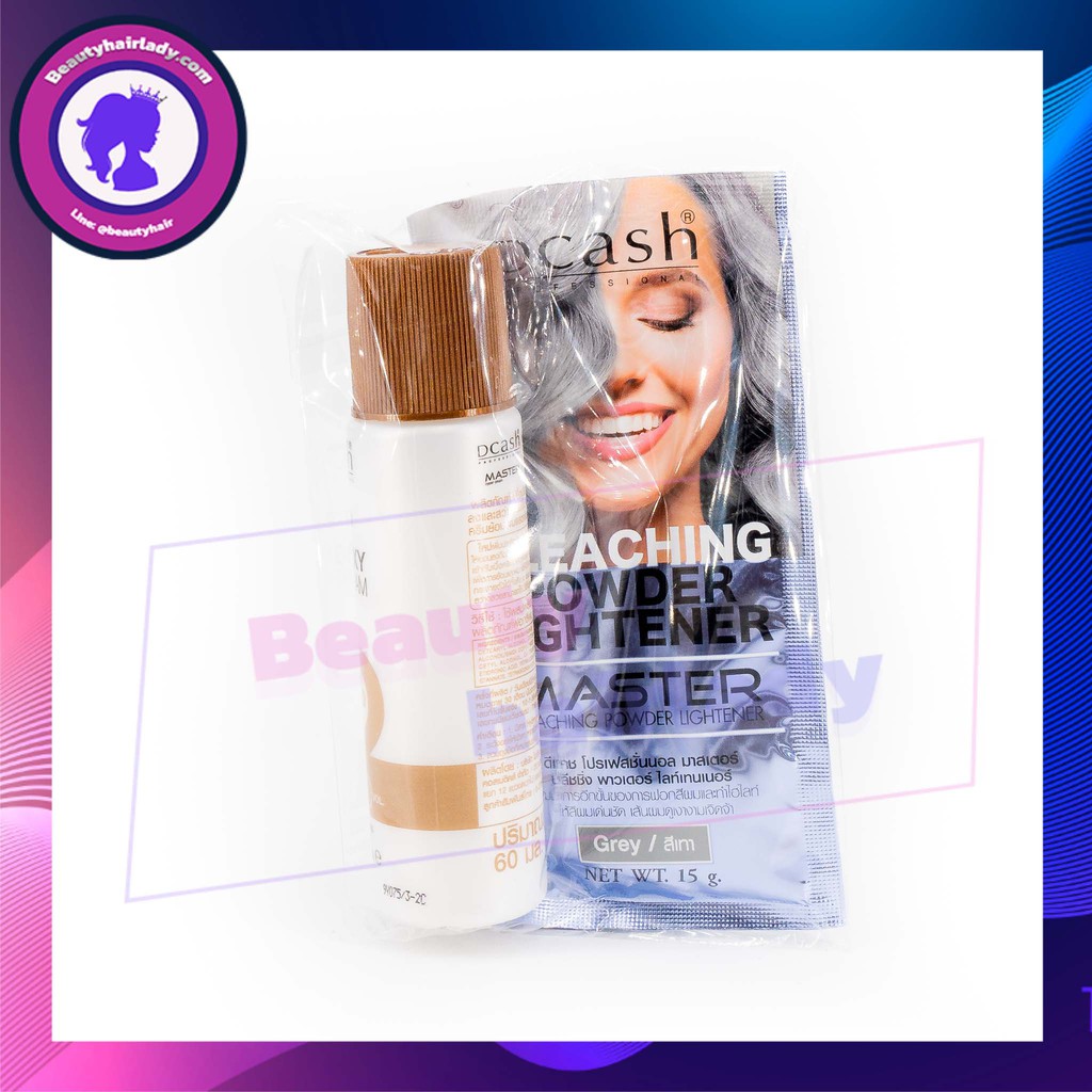 💊ผงกัด สีผม Dcash master bleaching ดีแคช มาสเตอร์ บลีชชิ่ง 15g. พร้อม mildroxy 60ml. ผงฝอก สีผม สีสว่าง ขาว เทา ทอง ย้อม