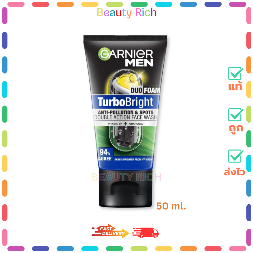 (1 หลอด) Garnier Men – การ์นิเย่ เมน โฟมล้างหน้า Turbo Bright Anti-Pollution & Spots (50 ml.)