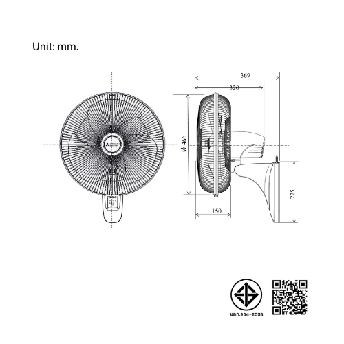 พัดลมติดผนัง 16 นิ้ว MITSUBISHI W16-RA BL สีฟ้า-ขาว