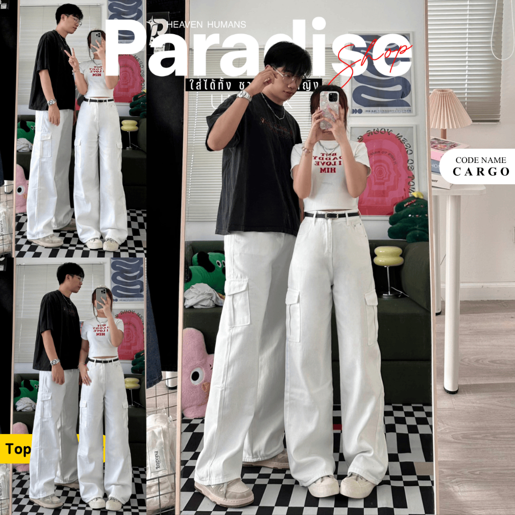 Cargo Smok'e Gray กางเกงคาโก้ สีเทาฟอก สไตล์ Unisex ใส่ได้ทั้งชายและหญิง