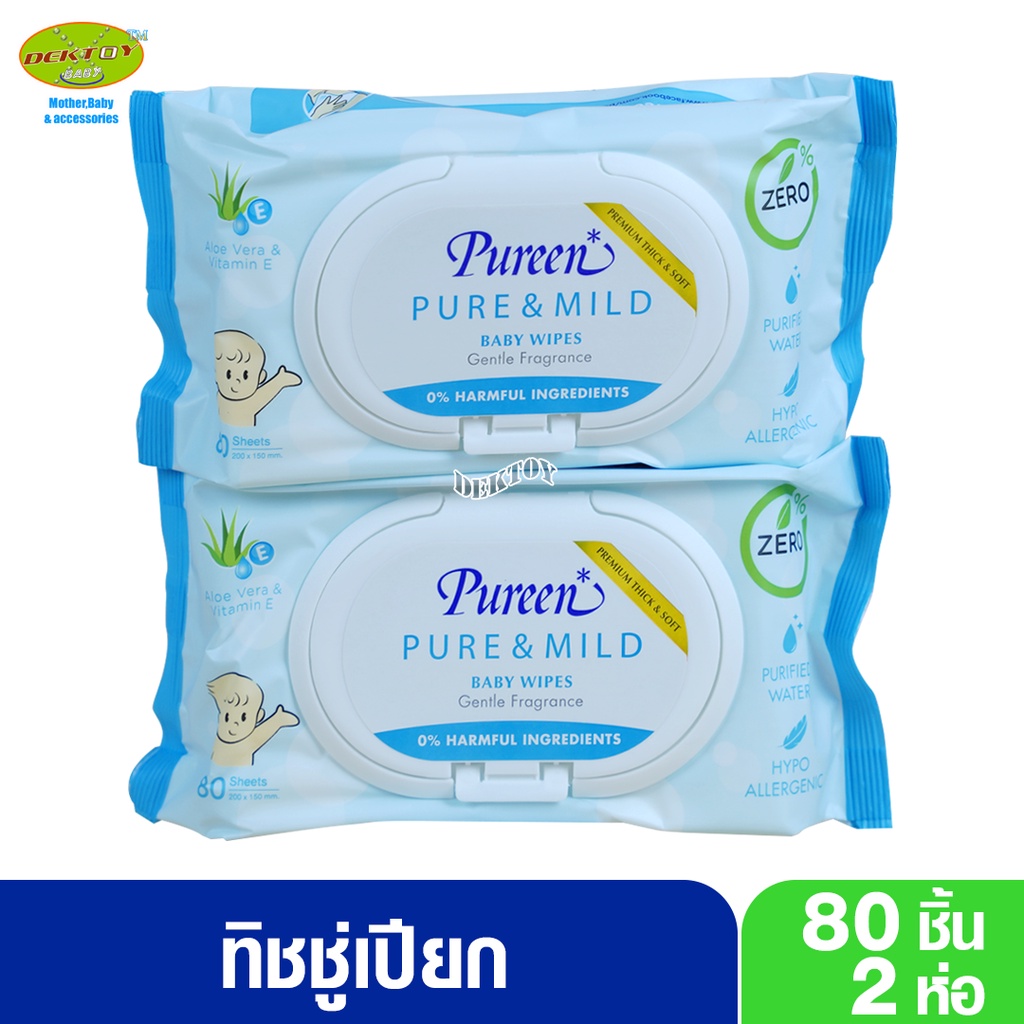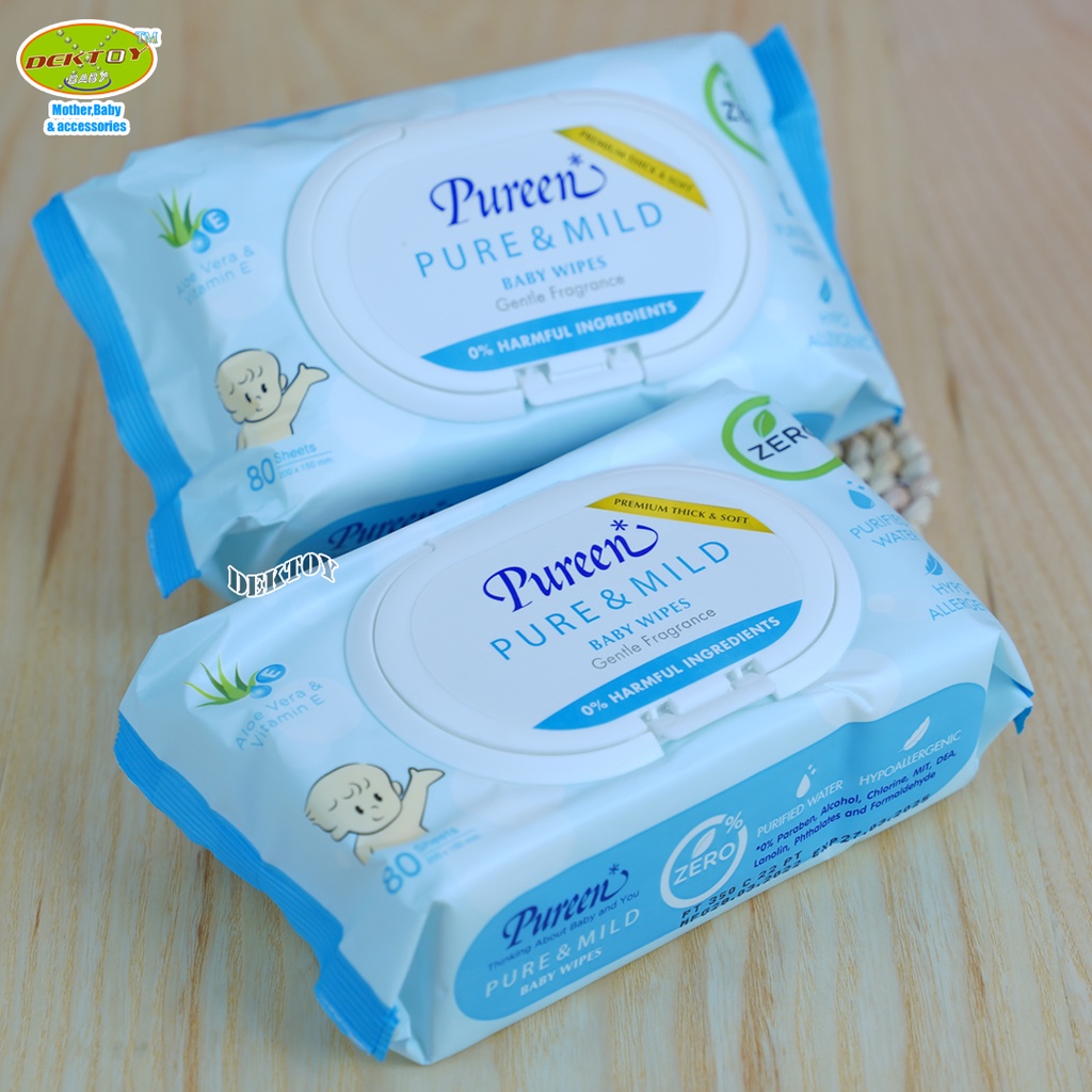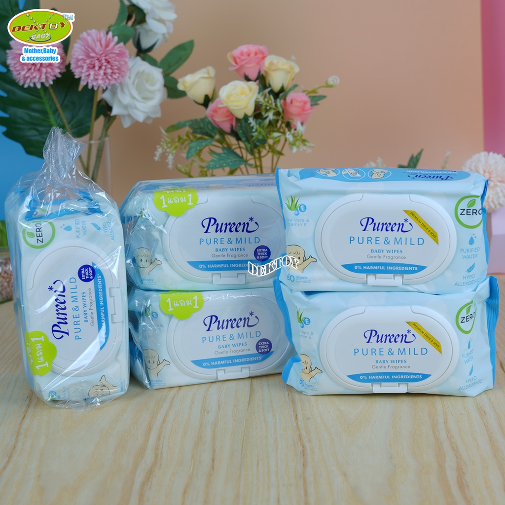 Pureenเบบี้ไวพส์เพียวรีน สูตรเพียวแอนด์มายด์80ชิ้นซื้อ1แถม1