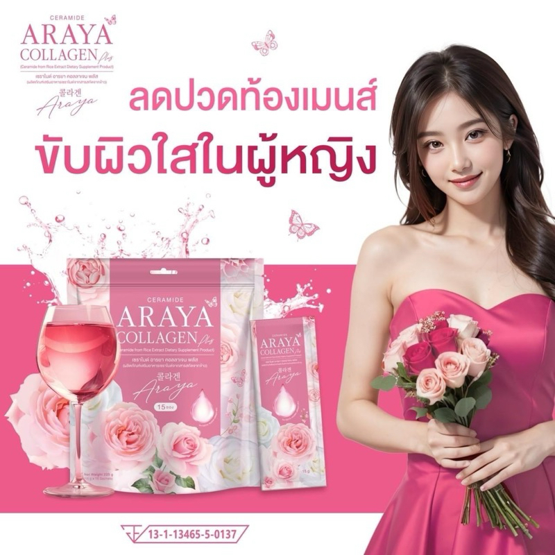 คอลลาเจนชมพู อารยาเซราไมด์ ARAYA COLLAGEN CERAMIDE 1 ห่อ บรรจุ 15 ซอง ฝ้ากระ ฟิตฟู