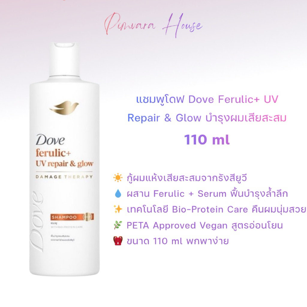 หมดอายุปี 28🧡Dove Ferulic+ UV Repair & Glow Damage Therapy Shampoo 110 มล