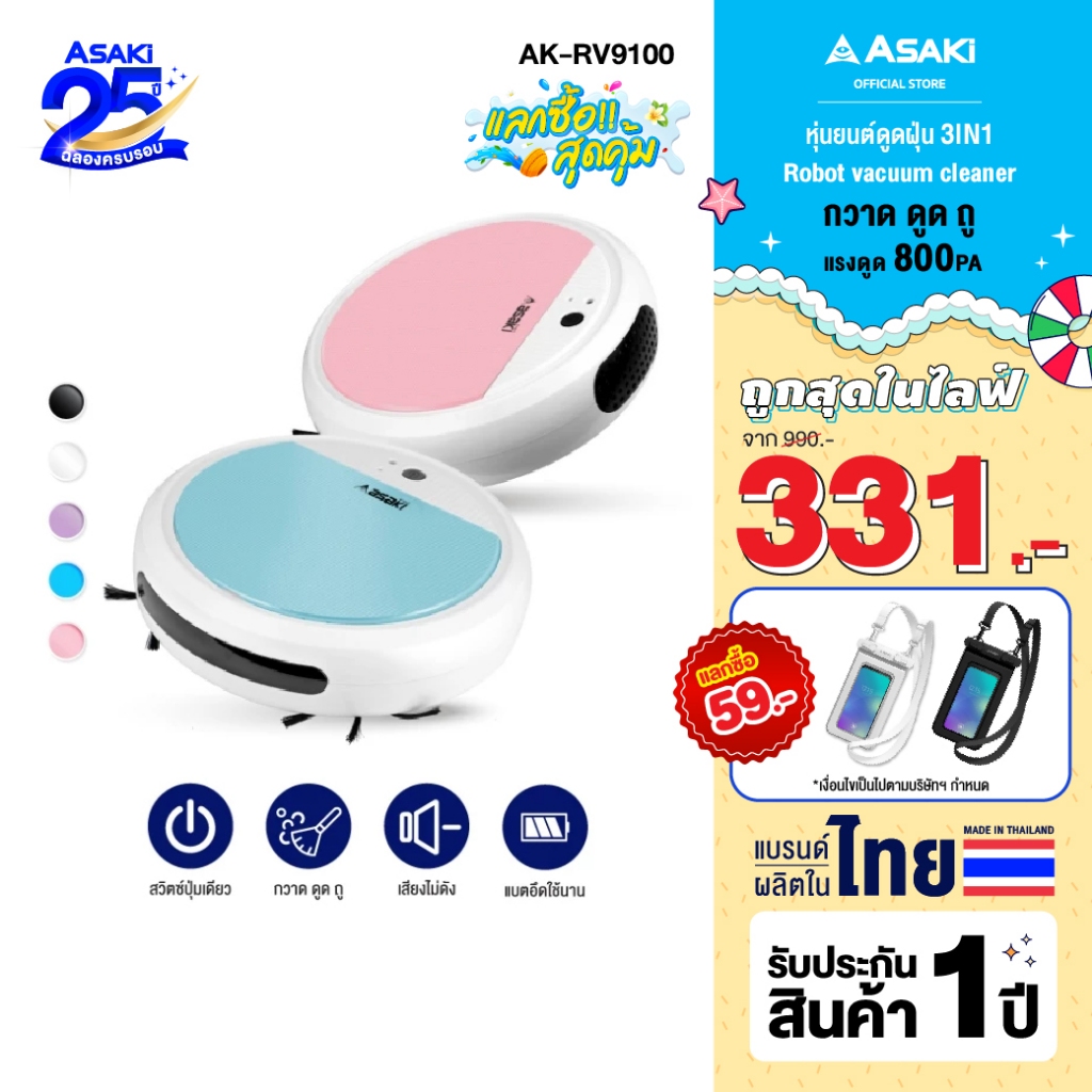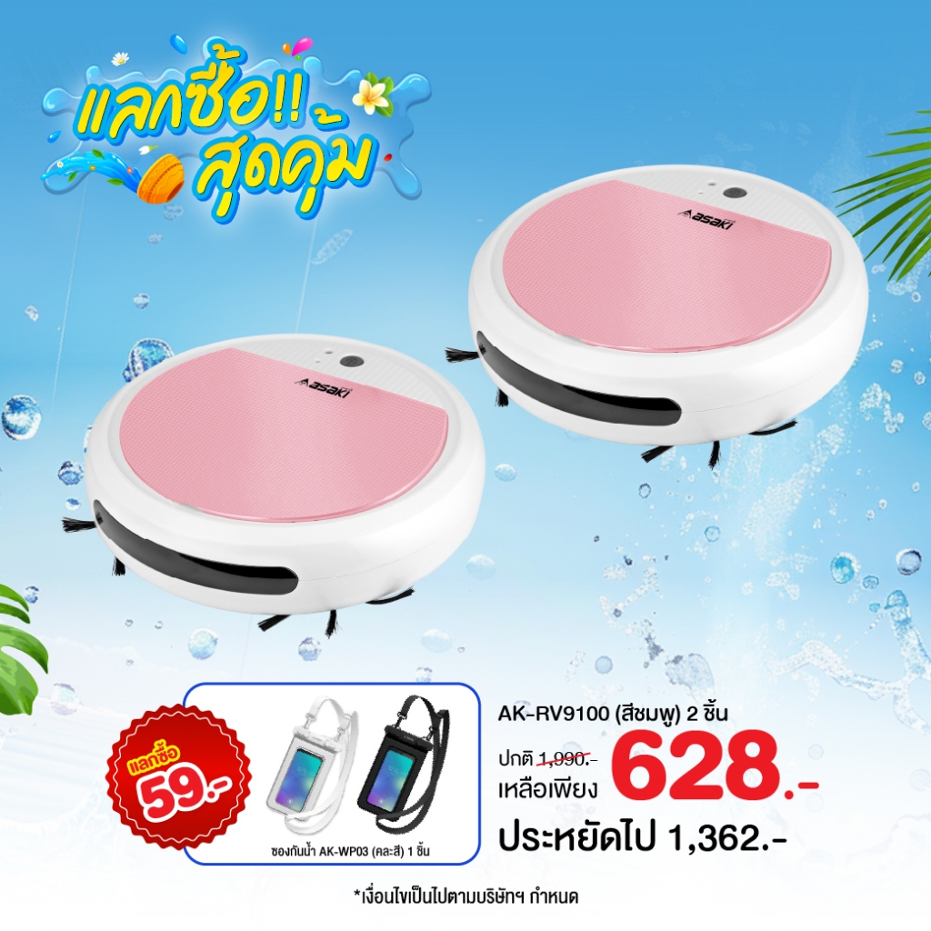 Asaki Robot vacuum cleaner หุ่นยนต์ดูดฝุ่นอัจฉริยะ 2in1 กวาดและดูด รุ่น AK-RV9100 - ประกัน 3 เดือน