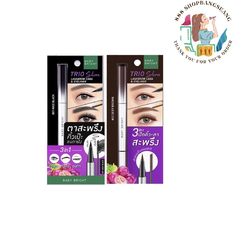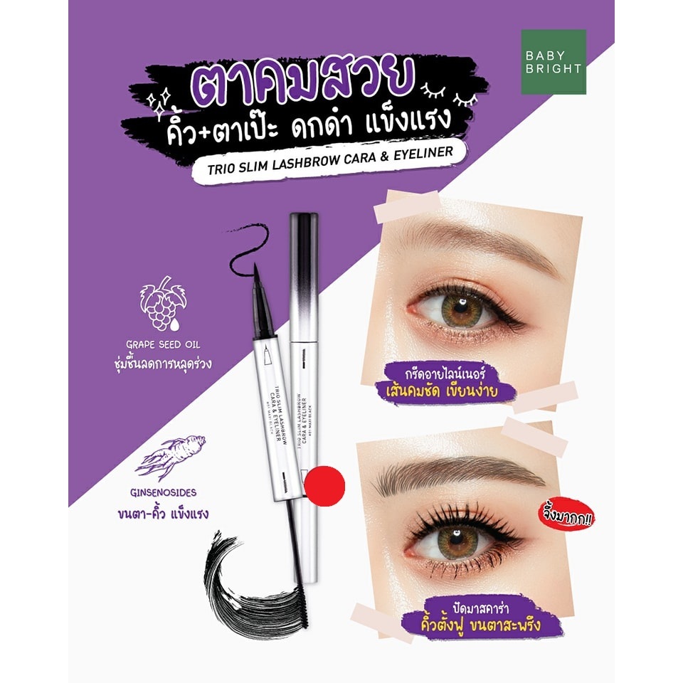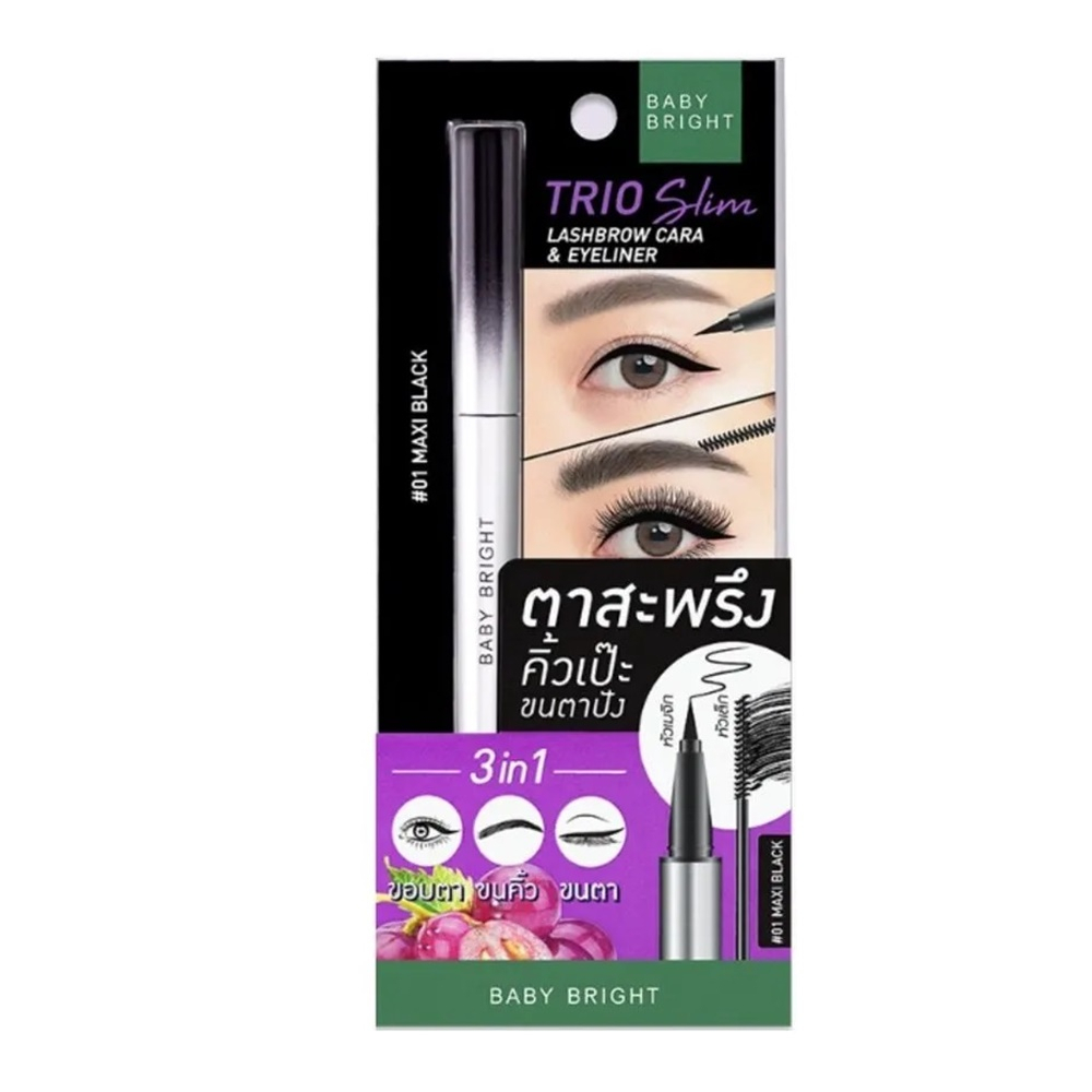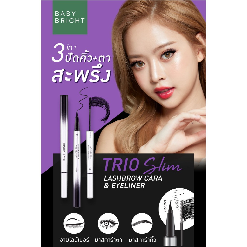 เบบี้ไบร์ท 3in1 ปัดคิ้ว+ตา Baby Baby Bright Trio Slim Lashbrow Cara & Eyeliner