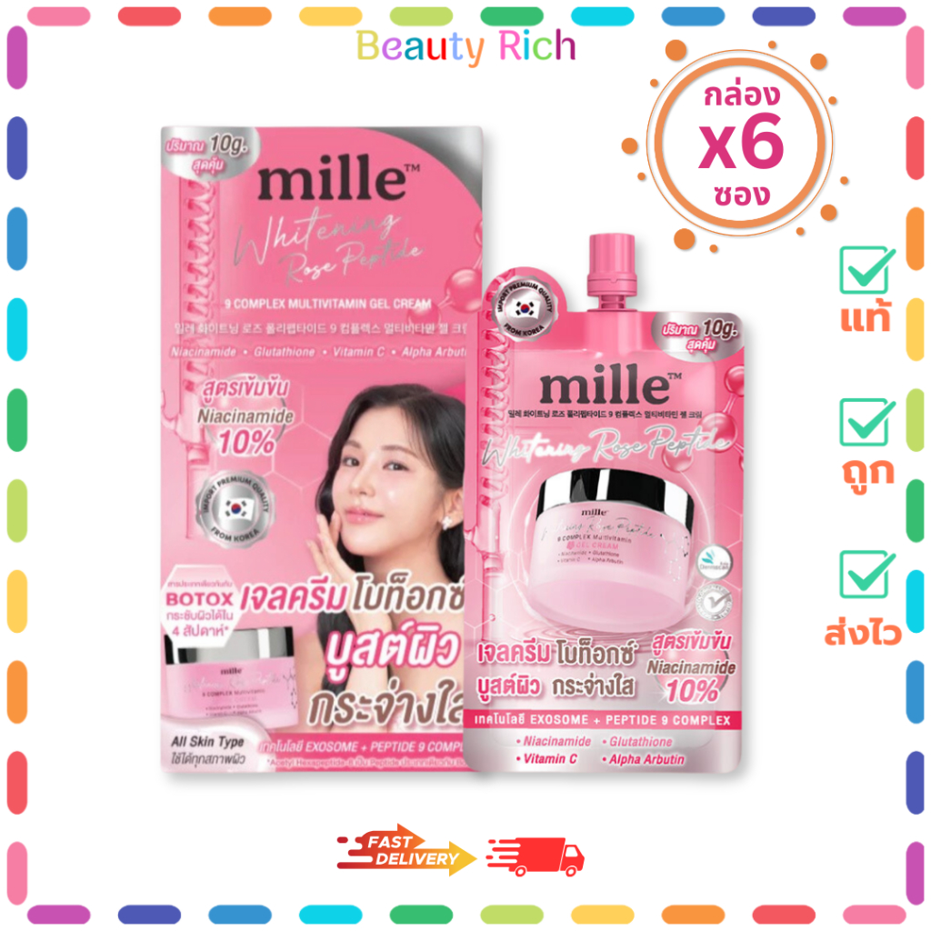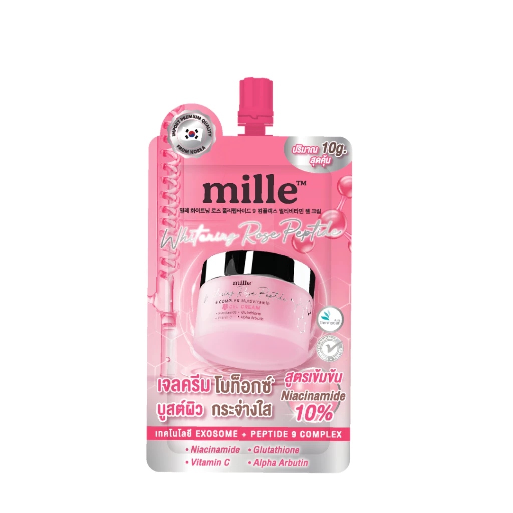 (กล่อง 6 ซอง) MILLE WHITENING มิลเล่ ไวท์เทนนิ่ง โรส เปไทด์ ไนน์ คอมเพล็กซ์ เจล ครีม (10 g.)
