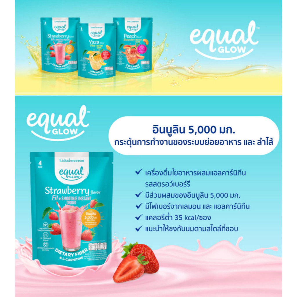 พร้อมส่ง Equal Glow Strawberry ขนาด 4 ซอง เครื่องดื่มรสผลไม้รสสตรอว์เบอร์รี่