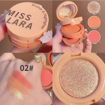Miss Lara บลัชออน ไฮไลท์ และ อายแชโดว์ ปัดแก้ม เซ็ต 3 สี ในตลับเดียว สวยทุกสี มีชิมเมอร์ 1 ชั้นทั้ง 2 ตลับ