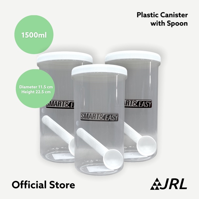 Pioneer กล่องใส่อาหาร กล่องใส่นมผง โหลพลาสติก โหลบรรจุอาหาร (PS) เกรด A ขนาด 1700 มล จำนวน 3 ชิ้น (พร้อมช้อนขนาด 1 ชต)
