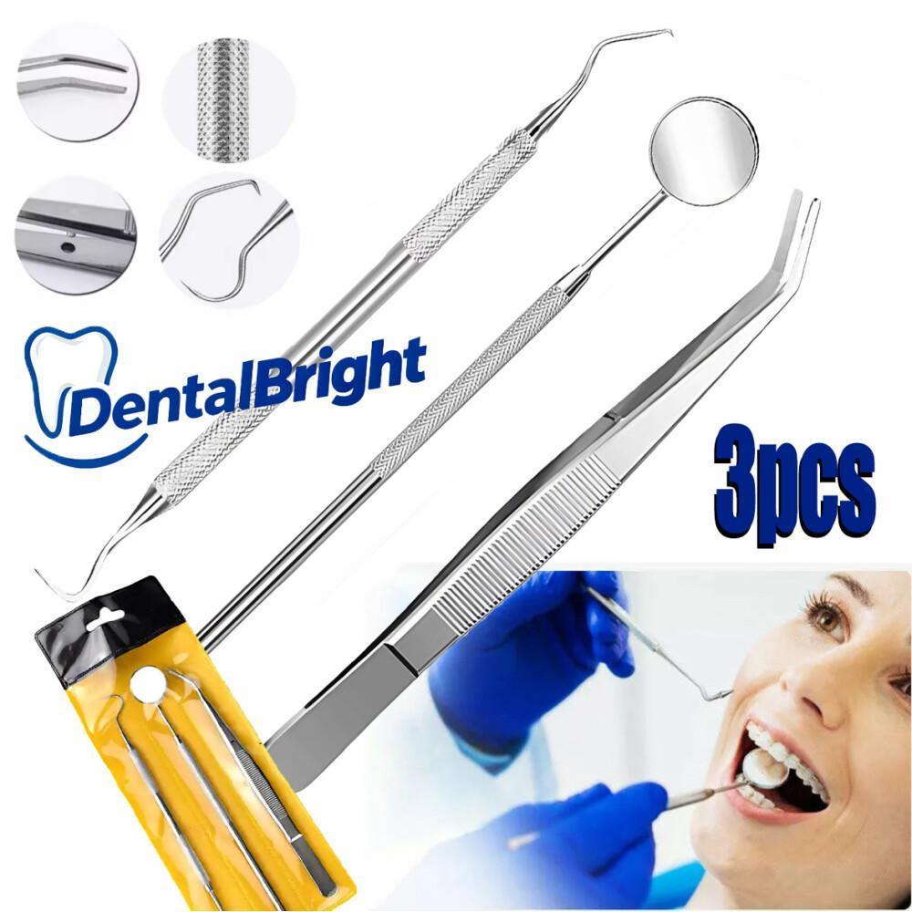 3pcsDental Tools Dental Pick Oral Care Kit Stainless Steel Dental Hygiene Set Tooth Scraper Tartar Tweezers Mouth Mirror