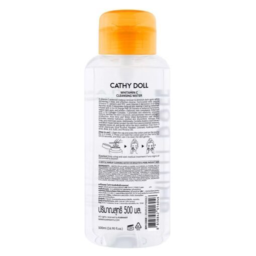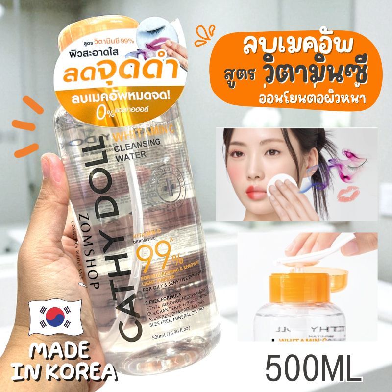 Cathy Doll【ฝาปั้มส้ม】เช็ดเครื่องสำอาง สูตรน้ำ【วิตามินซี】Cathy Doll Whitamin C Cleansing Water 500ml