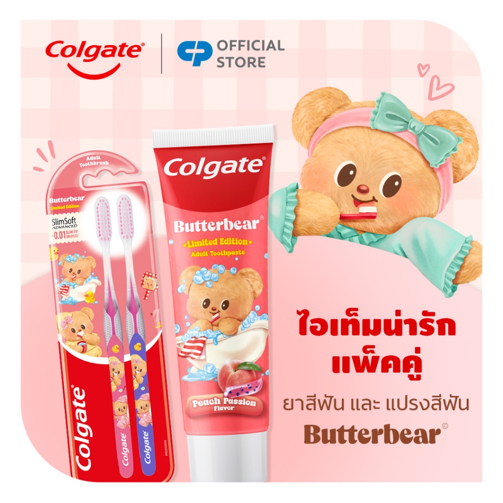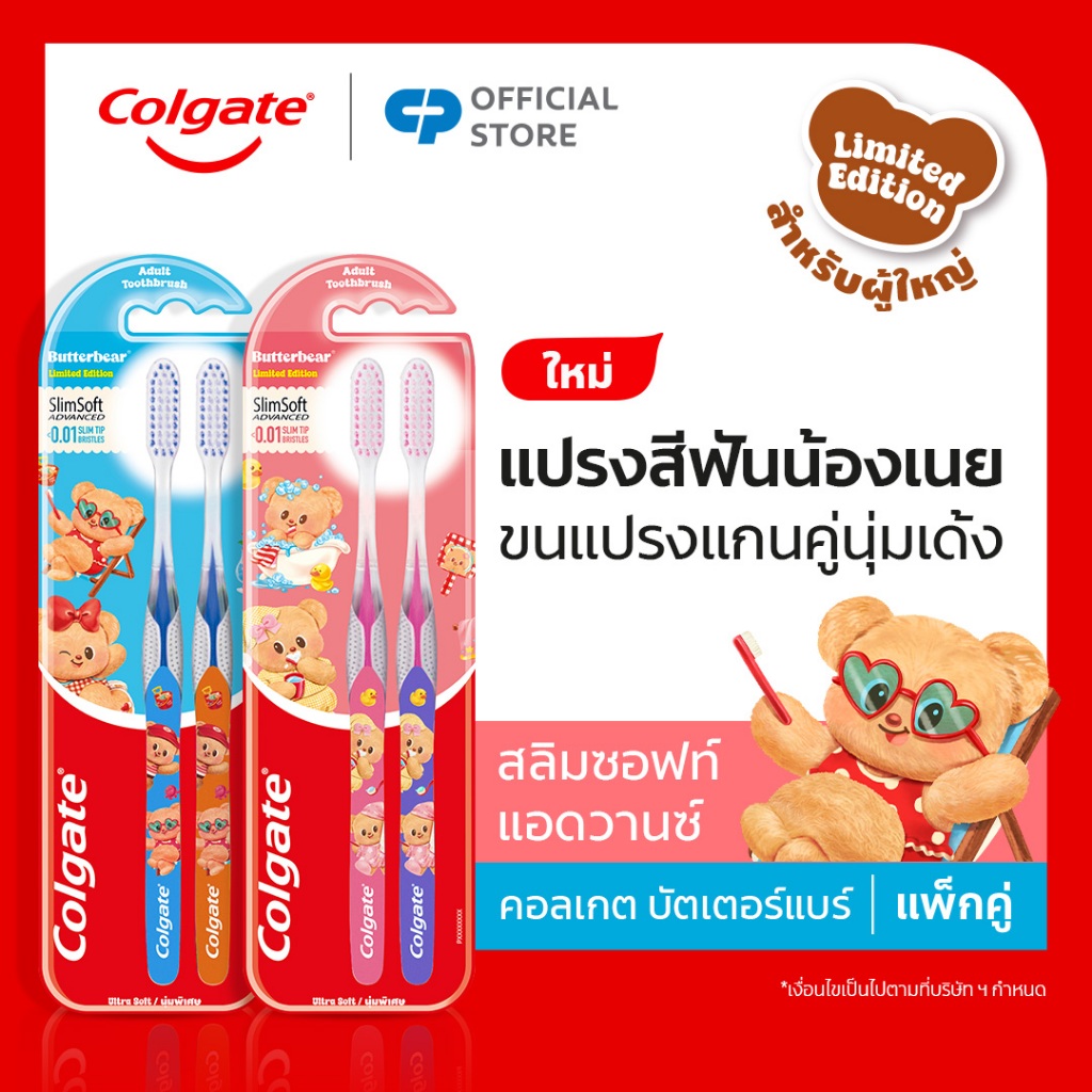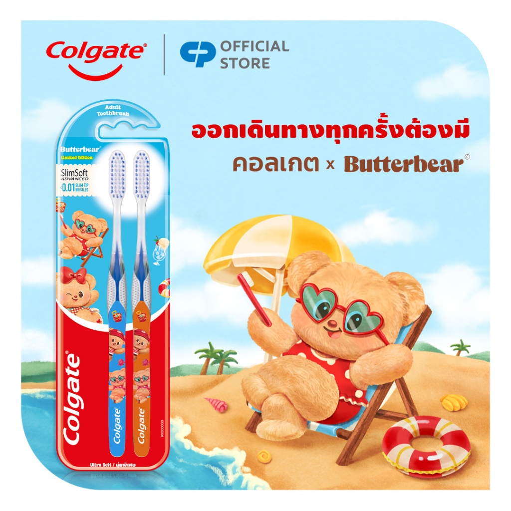 แปรงสีฟัน คอลเกต สลิมซอฟท์ แอดวานซ์ บัตเตอร์แบร์ แพ็คคู่ Colgate Slim Soft Advanced Toothbrush x Butterbear Twin Pack