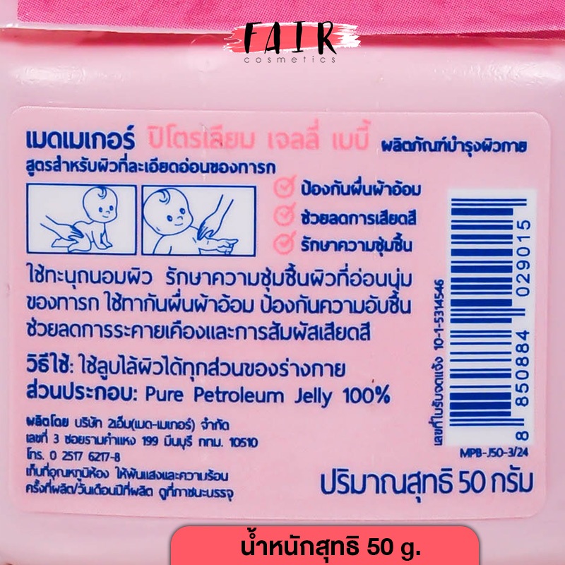 [3 กระปุก] Medmaker Petroleum Jelly Baby เมดเมเกอร์ ปิโตรเลียม เจลลี่ เบบี้ [50 g.] ครีมทาผื่นผ้าอ้อม ผื่นคัน แห้งสบาย