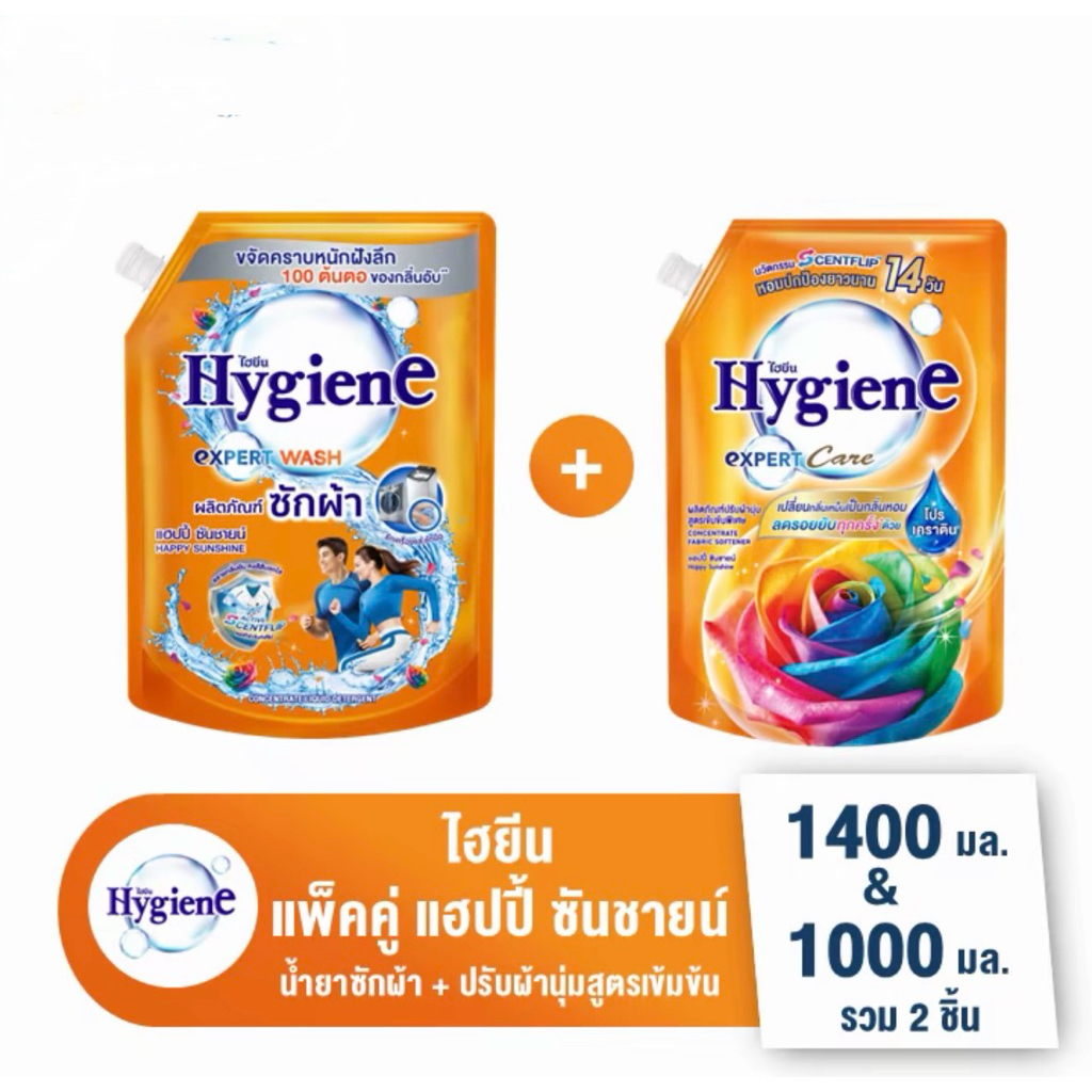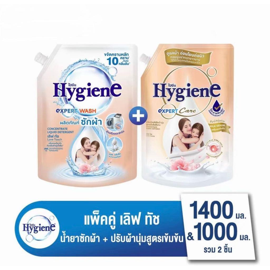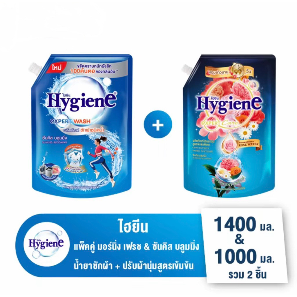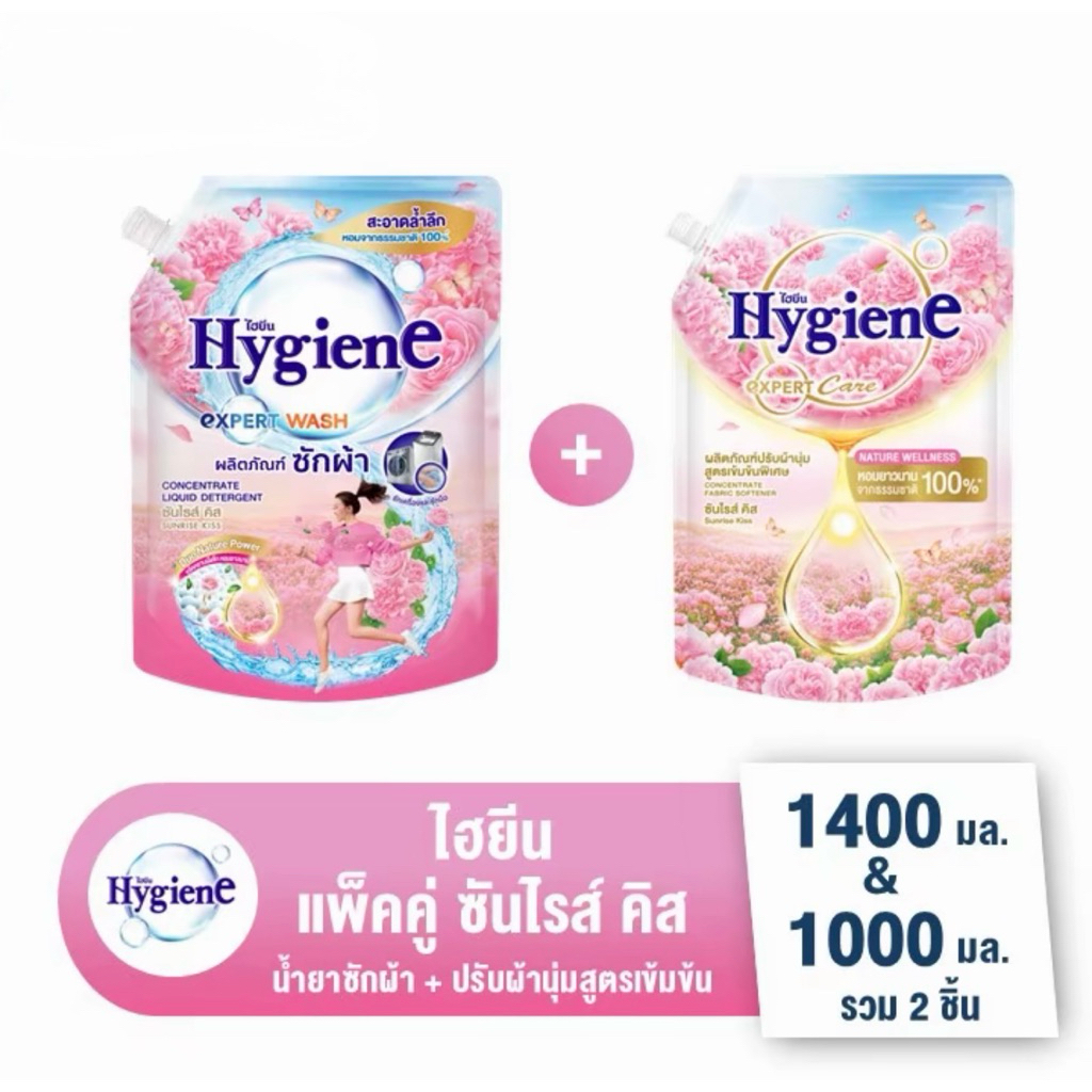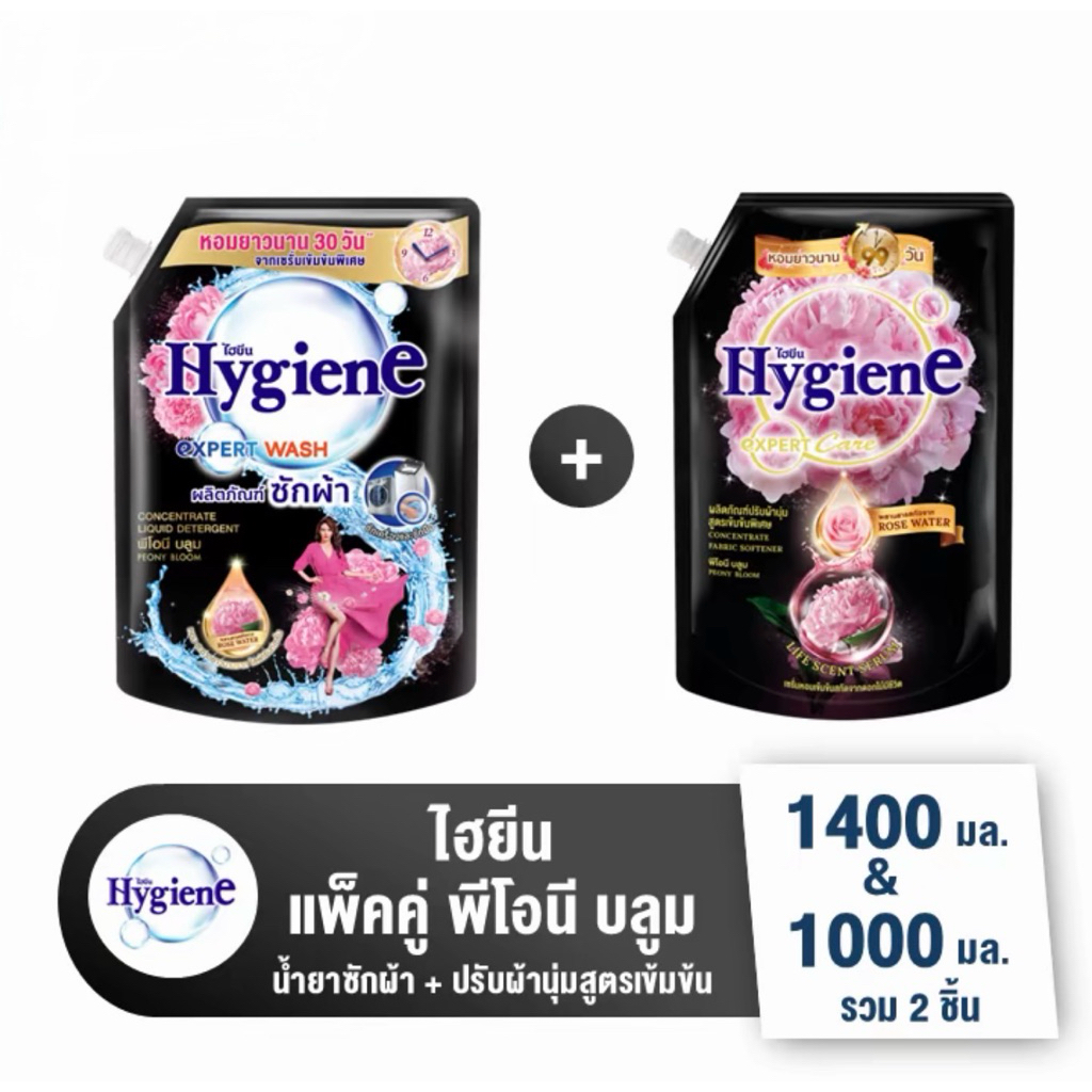[แพ็คคู่ซัก+ปรับ] ไฮยีน น้ำยาปรับผ้านุ่มเข้มข้น1000มบ+น้ำยาซักผ้า1400มล แพคซัก1ถุง+ปรับ1ถุง