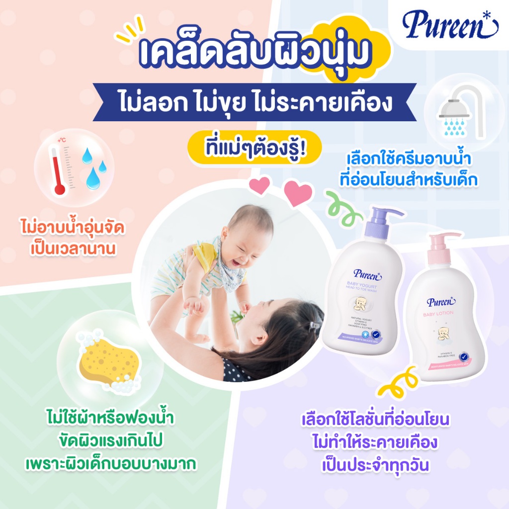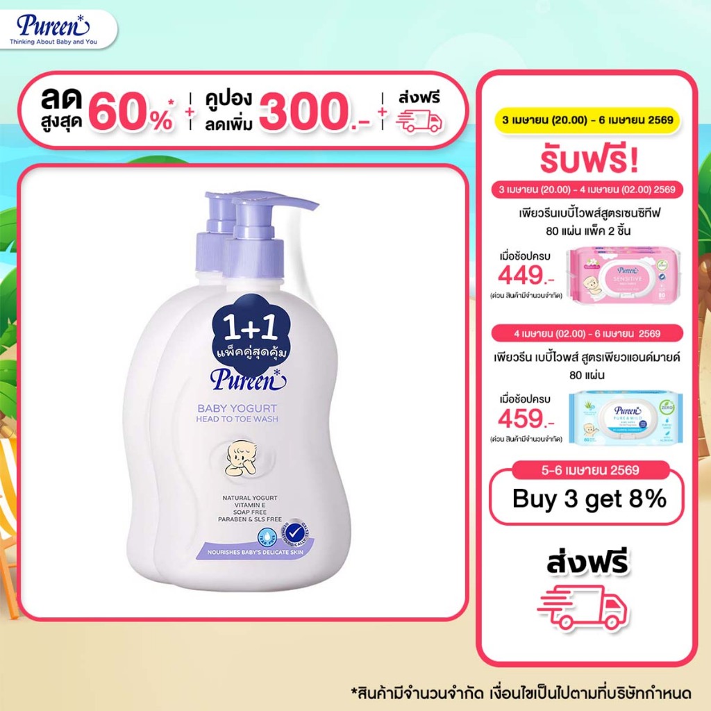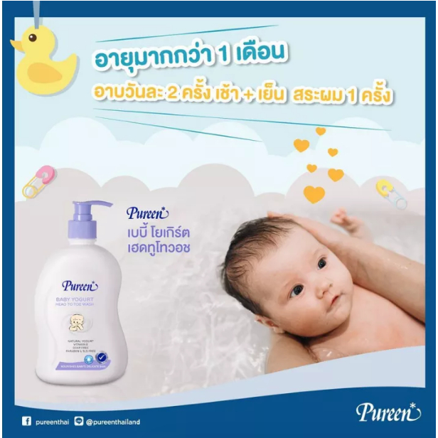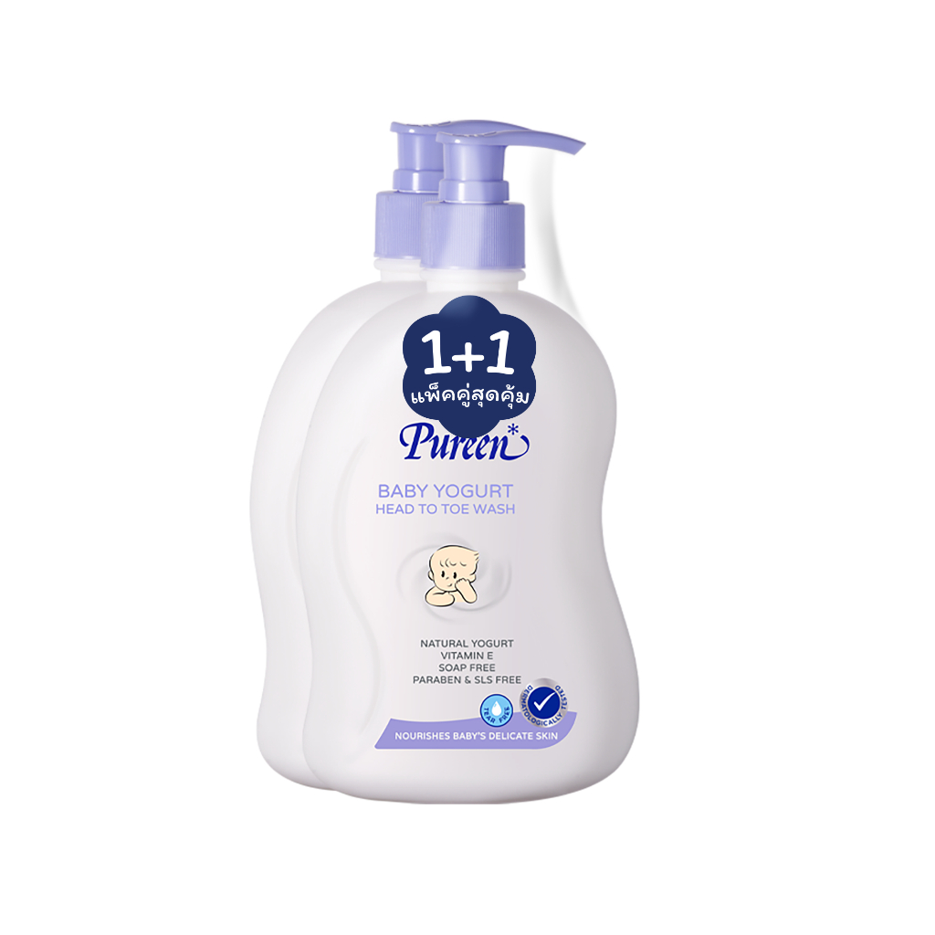 [1 แถม 1] Pureen เพียวรีน เบบี้โยเกิร์ตเฮดทูโทวอช 500 มล. ครีมอาบน้ำ ใช้ได้ทั้งอาบและสระ ส่วนผสมธรรมชาติจากโยเกิร์ต
