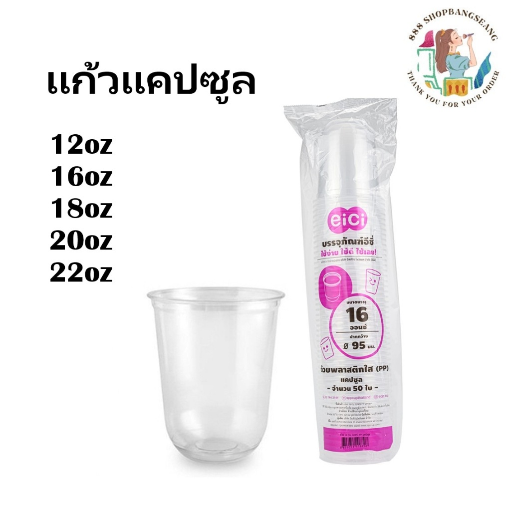 แก้วแคปซูล แก้วพลาสติกใส PP ตราอีซี่ eici ปาก 95 มม. 50ชิ้น/แพ็ค