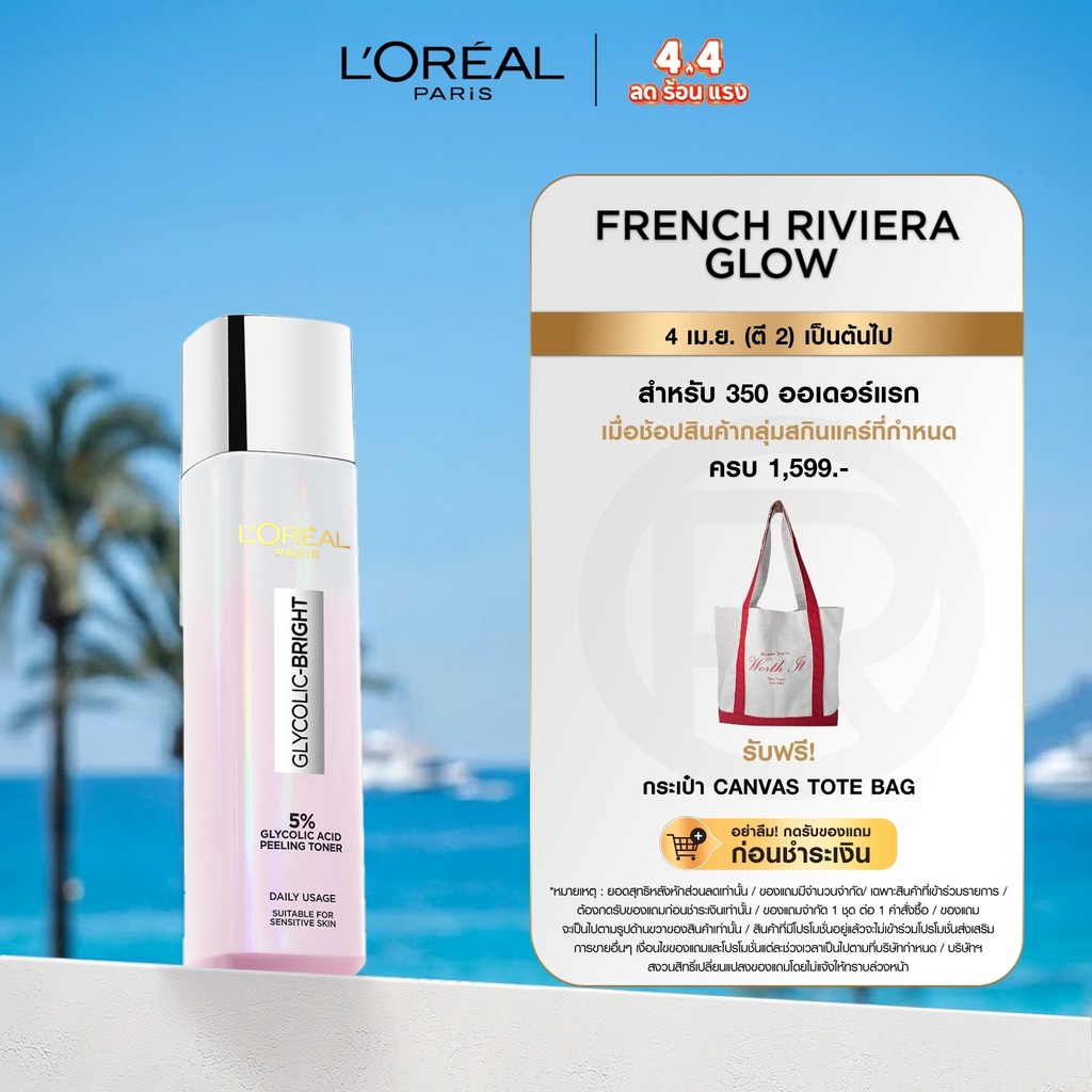 [ใช้โค้ดไลฟ์เหลือ 420.-] L'Oréal Glycolic Bright Peeling Toner 128ml โทนเนอร์ผลัดเซลล์ผิว เพื่อผิวดูเรียบเนียนกระจ่างใส