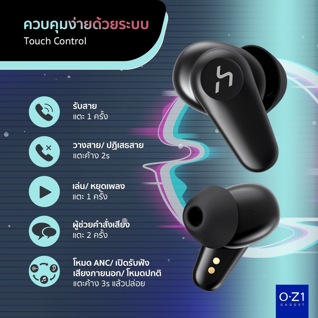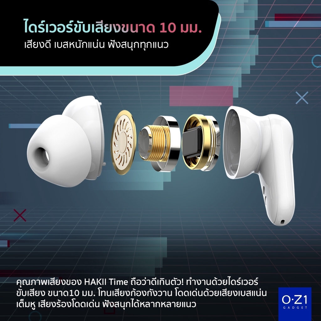HAKII Time หูฟังไร้สาย เสียงดี เบสหนัก ตัดเสียงรบกวน ANC คุยชัด แบตฯ อึด 20 ชม.